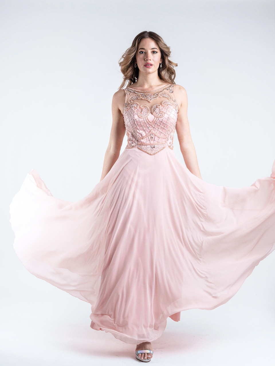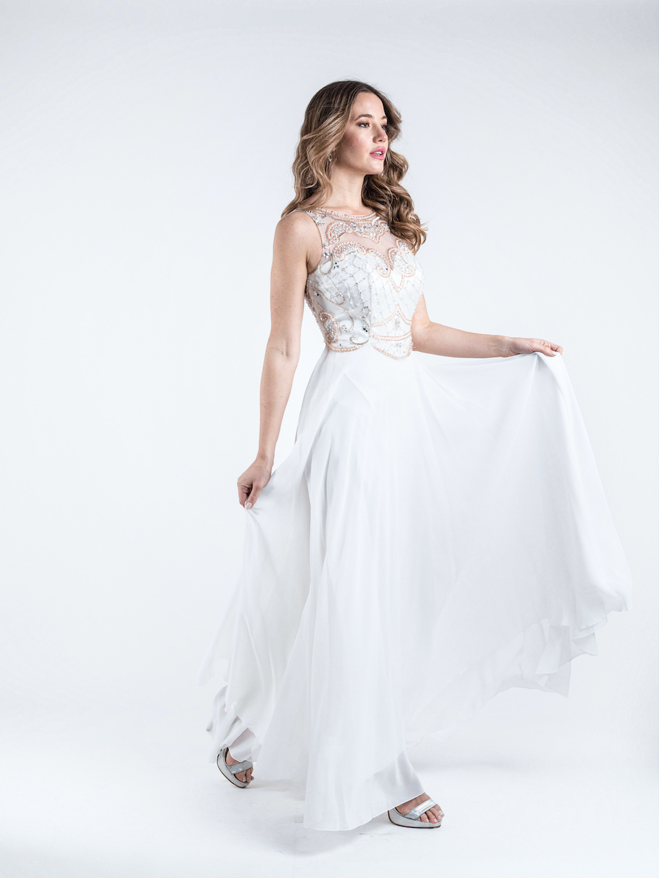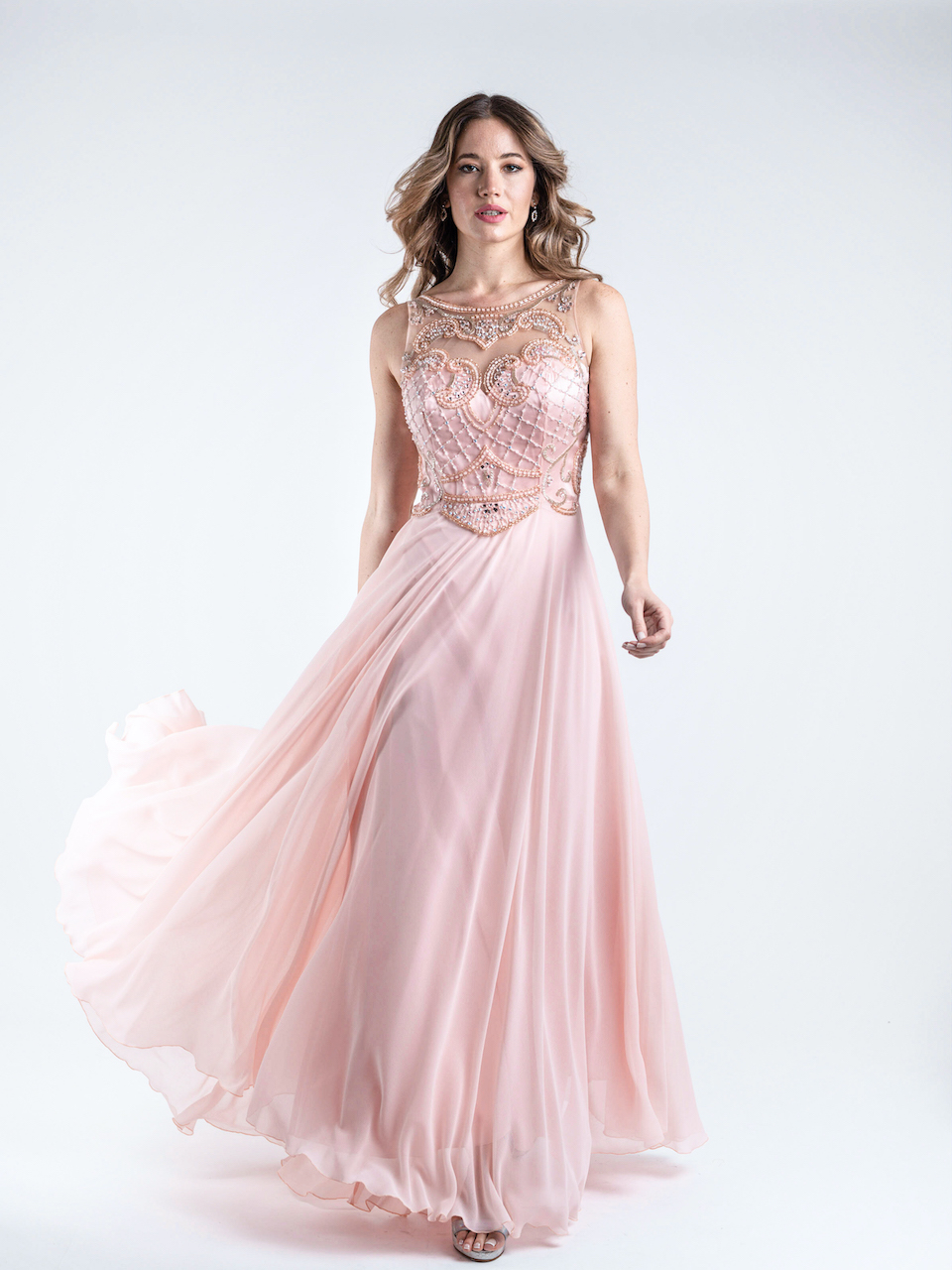 Romántico y sofisticado: Vestido largo con falda campana de gasa, ideal para un look etéreo y elegante. Su busto bordado con detalles delicados realza el escote corazón y deja el pecho libre para un toque audaz y femenino. La espalda en «O» aporta sensualidad con una silueta armónica y moderna.