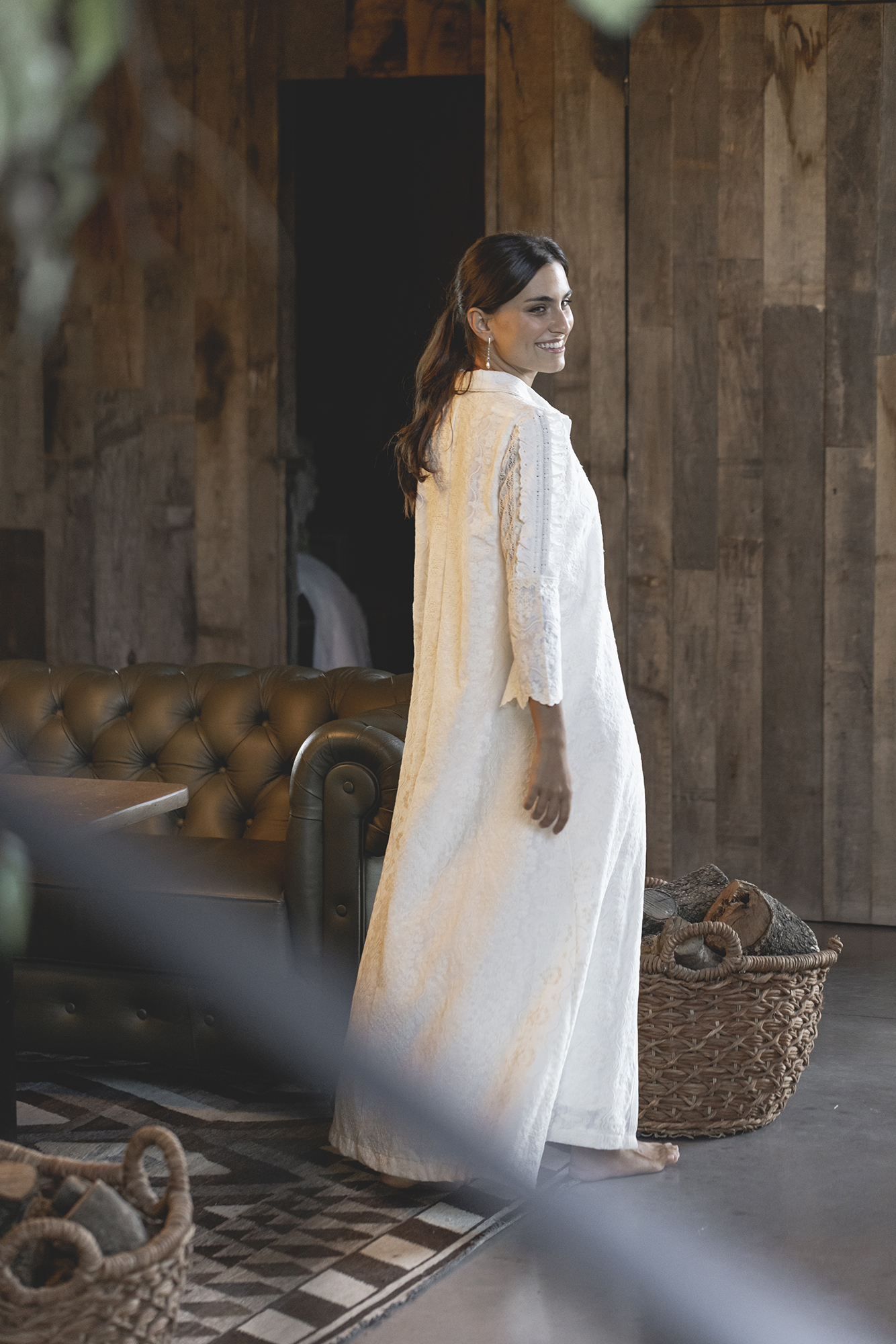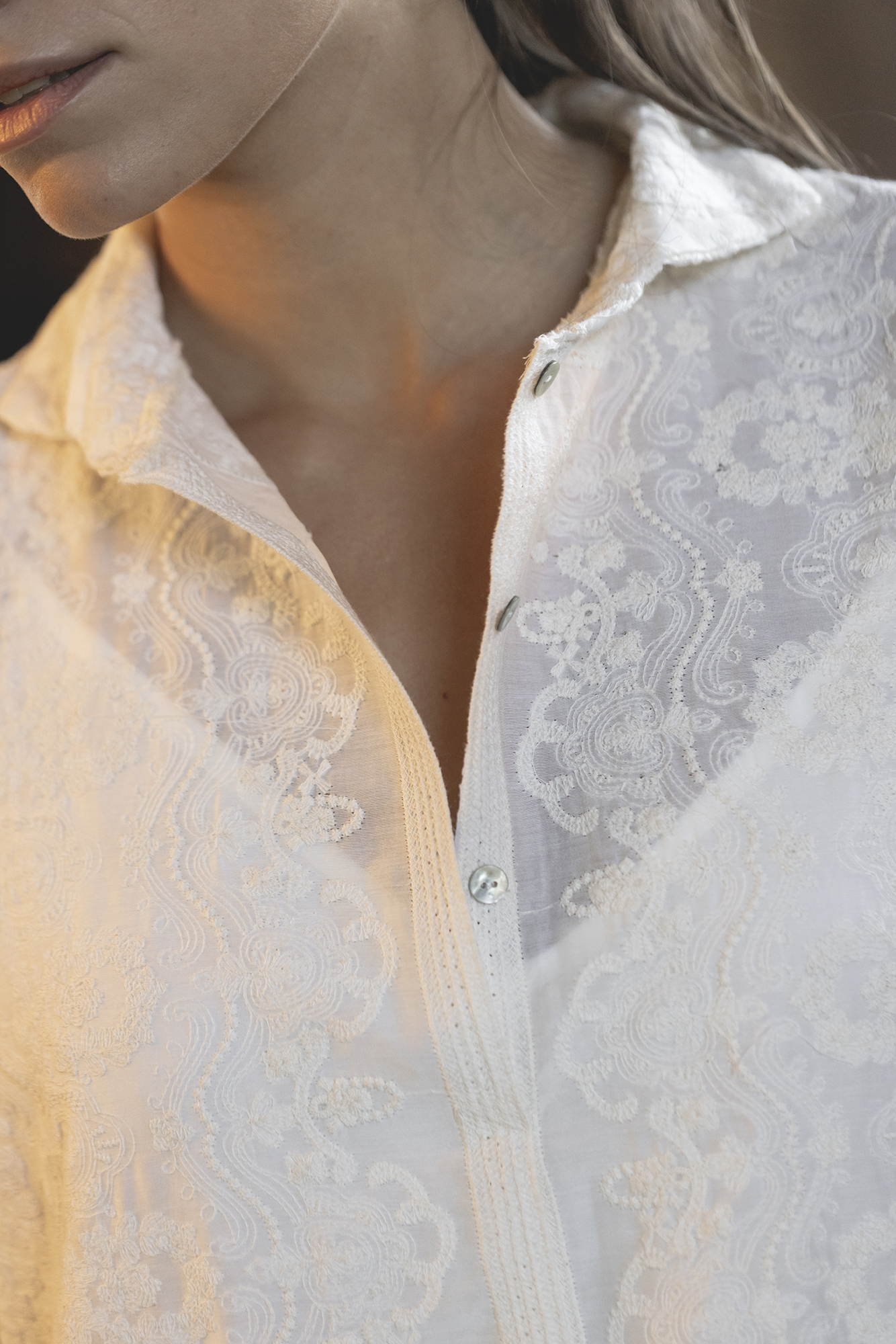 Bata realizada en seda bordada.