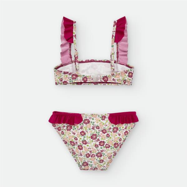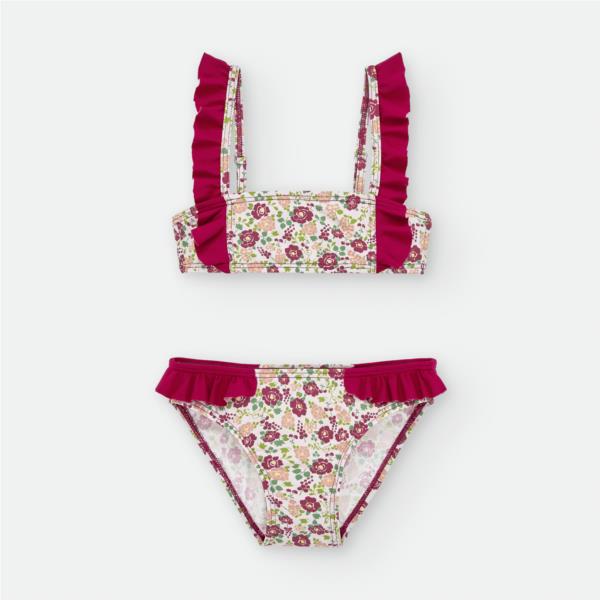 Bikini infantil con estampado de flores y volantes.