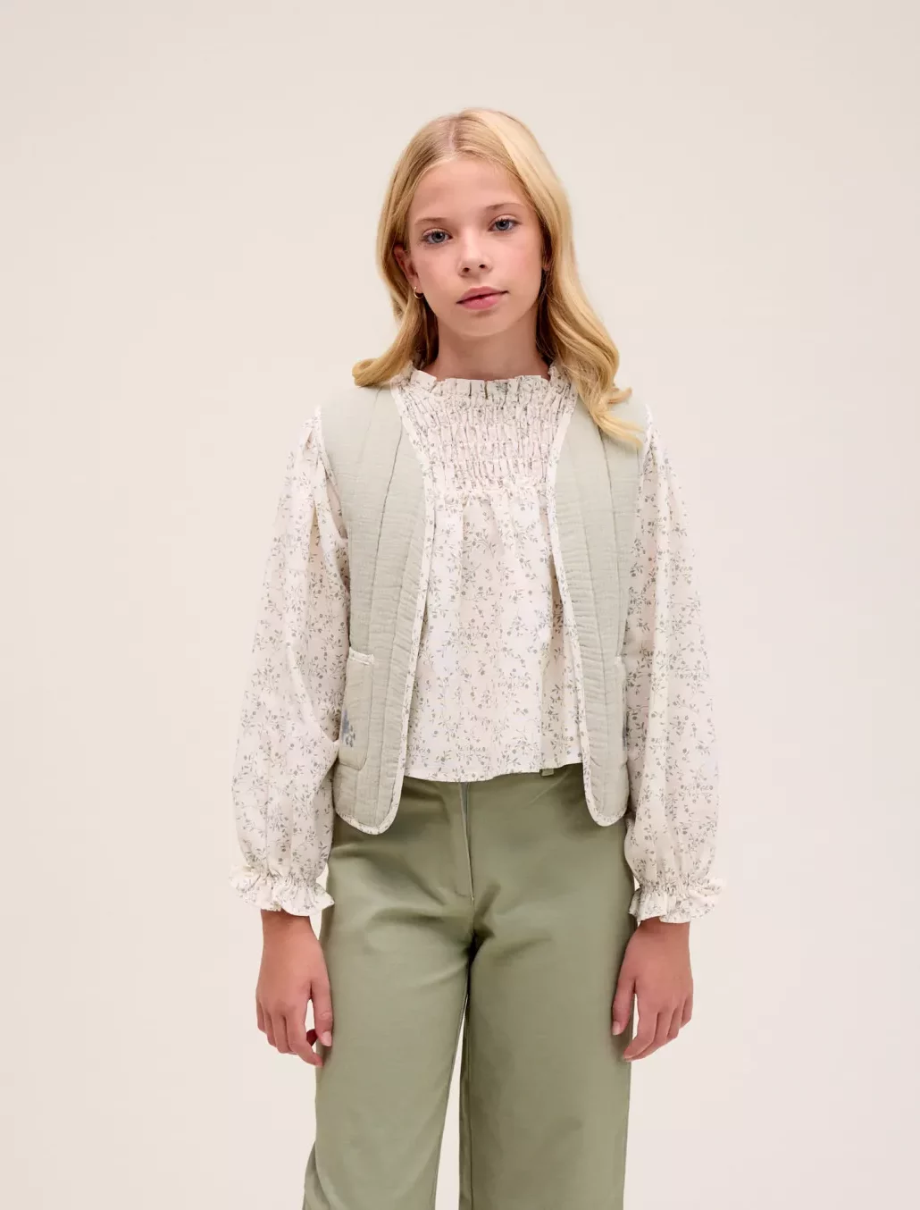 Blusa crudo con estampado floral verde