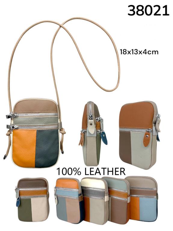 Bolsito Portamovil Multicolor de Piel con Diseño Exclusivo y 3 Bolsillos Exteriores con Cierre de Cremallera para Mujer.