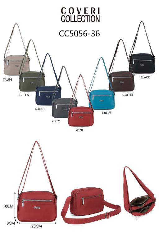 Bolso Bandolera en Nylon con 2 Bolsillos Exteriores y 2 Principales para Mujer, todos ellos con Cierre de Cremallera.