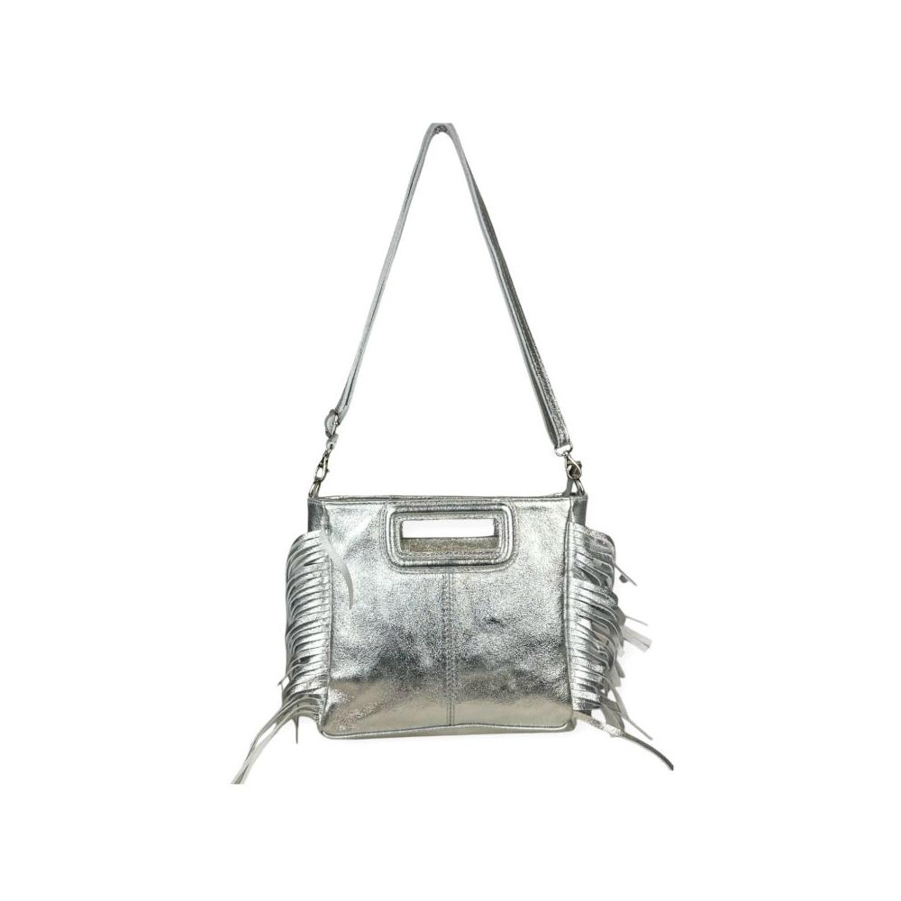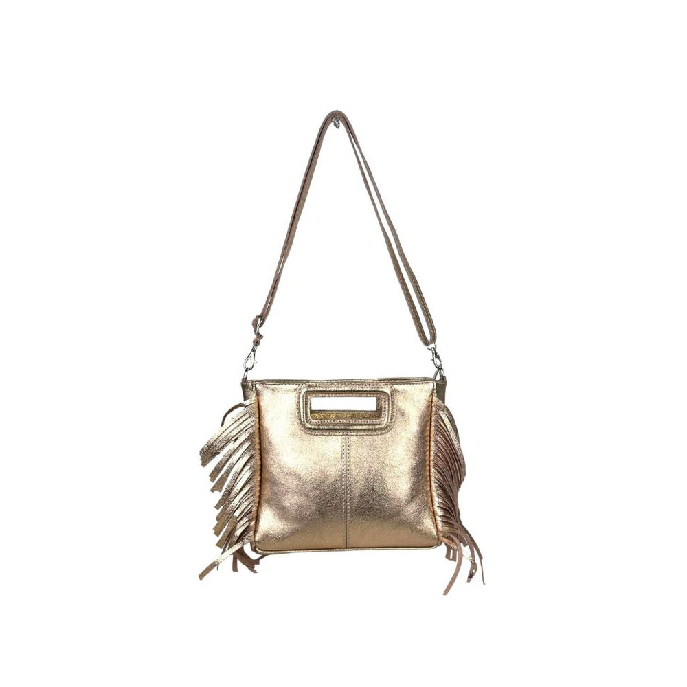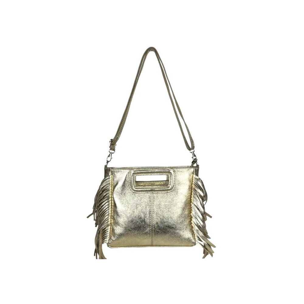 Bolso Bandolera de Piel con Efecto Brillante, Flecos Decorativos y Cierre de Cremallera para Mujer.