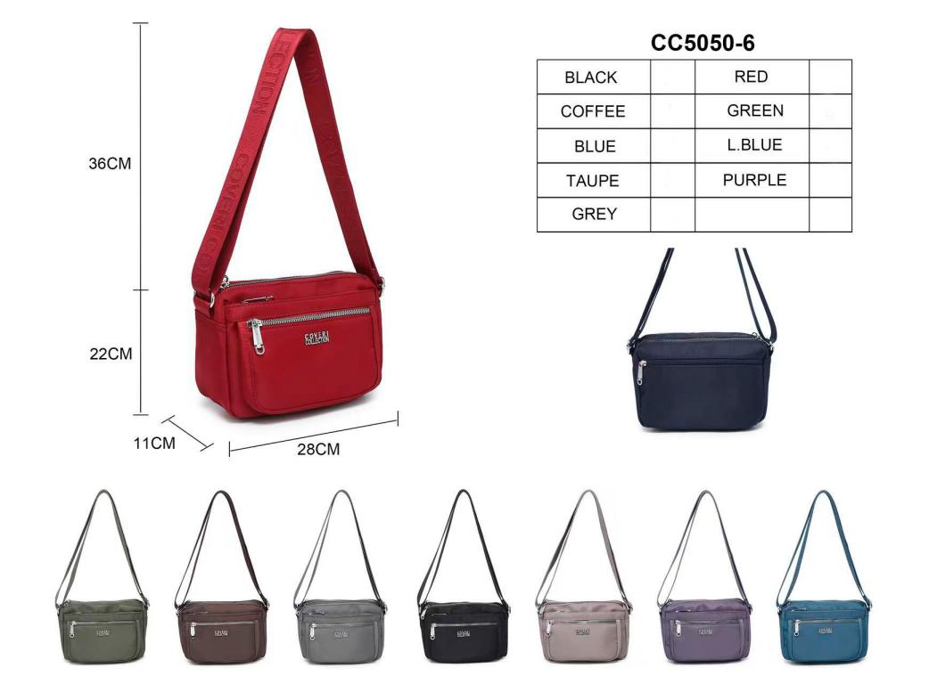Bolso Bandolera Nylon con Multicompartimentos, Tira Bandolera Ajustable y Cierre de Cremallera para Mujer.