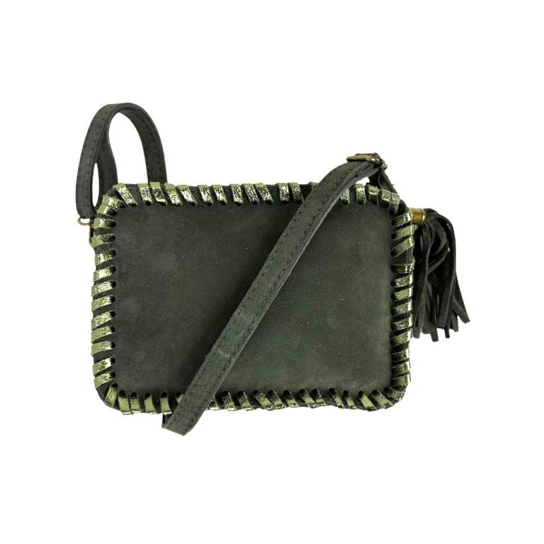 Bolso Bandolera Piel Italiana con Cierre de Cremallera y Flecos Decorativos para Mujer.