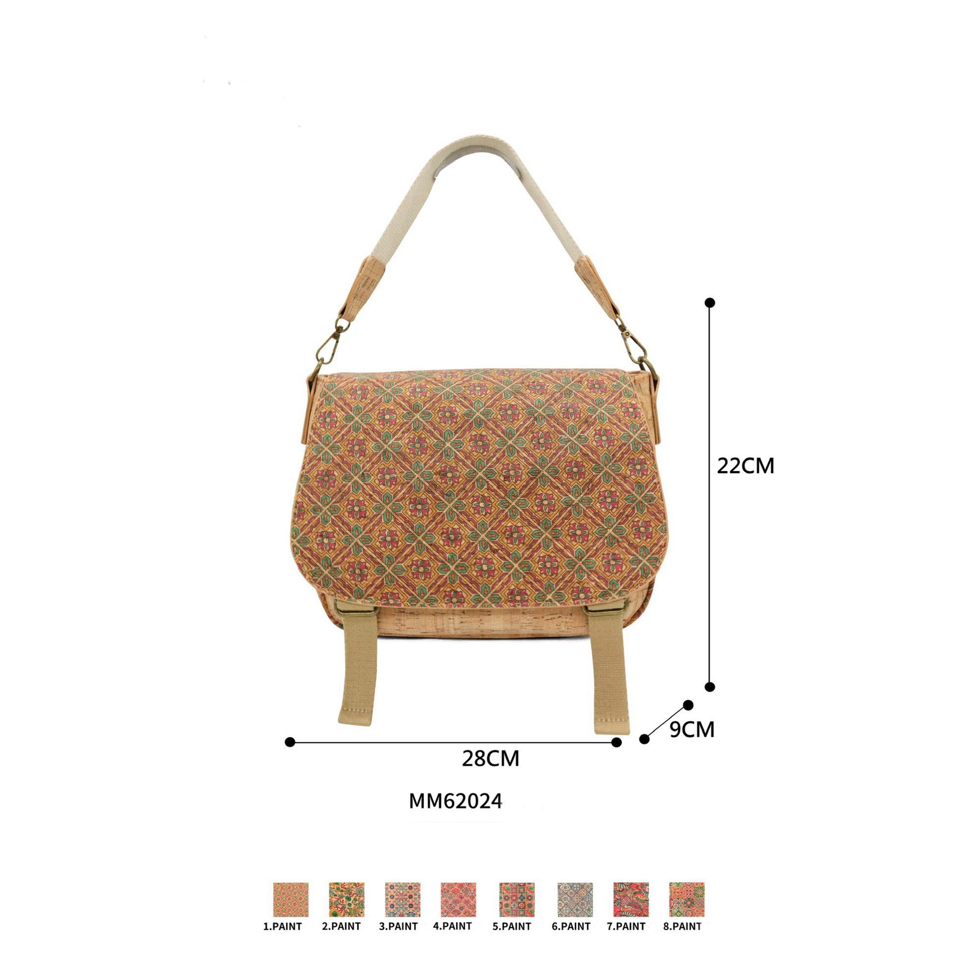 Bolso de Hombro Universitario Ecológico en Corcho Sintético para Mujer con Solapa y Bonito Diseño.