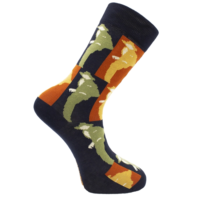 Un diseño en azul marino, verde oliva y naranjas otoñales que rinde homenaje a Castelao en este 2025, año dedicado a su figura. Clásicos, elegantes y con la silueta icónica del escritor, son unos calcetines que unen estilo y memoria cultural gallega.