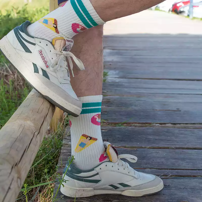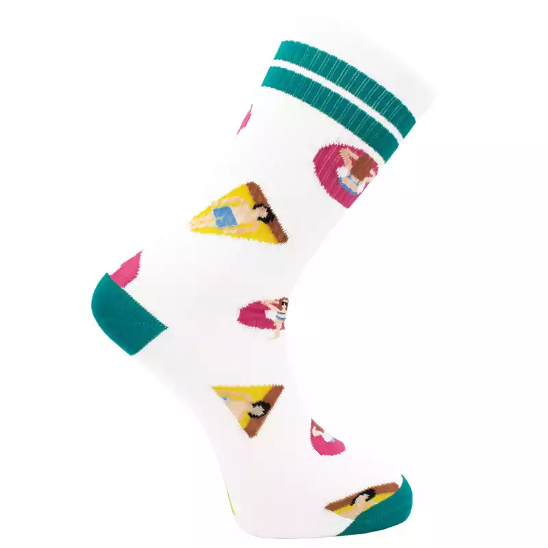 Estos calcetines deportivos tienen un aire noventero perfecto con la combinación del azul turquesa con el rosa y amarillo y son de lo más refrescantes, ¿a quién no le apetece un chapuzón con estas colchonetas?