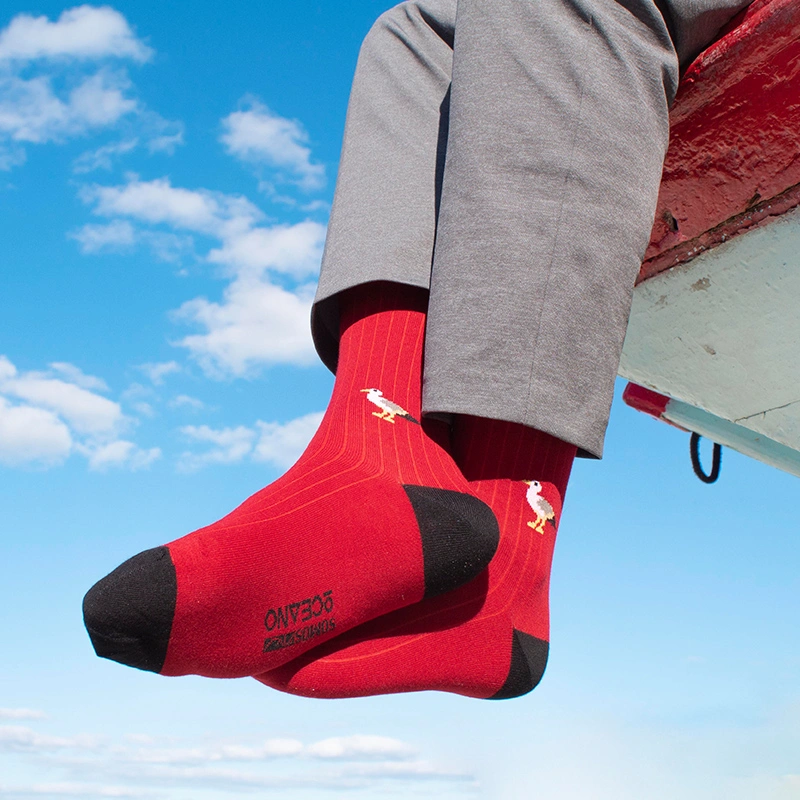 Dicen que los calcetines rojos son los más elegantes porque los lucen las personalidades más importantes. Ahora los puedes llevar tú con nuestro particular toque oceánico.