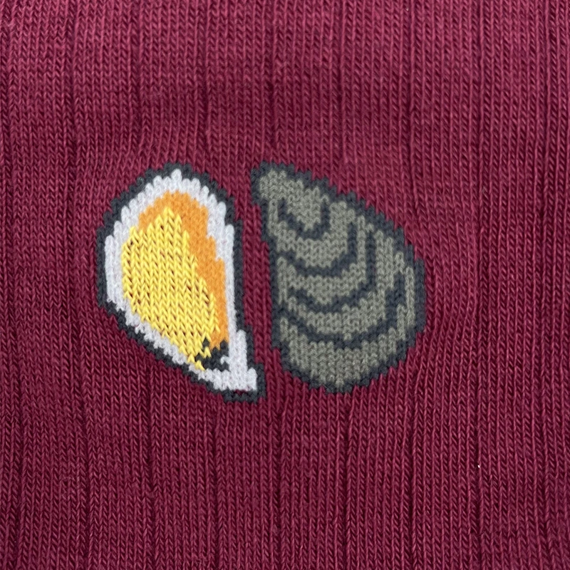 Calcetines lisos en algodón burdeos con un ligero canalé son la elección perfecta para quienes buscan un look sobrio pero con un toque de personalidad. El pequeño detalle de un mejillón en el tobillo añade un sutil guiño marinero, manteniendo la elegancia y discreción.