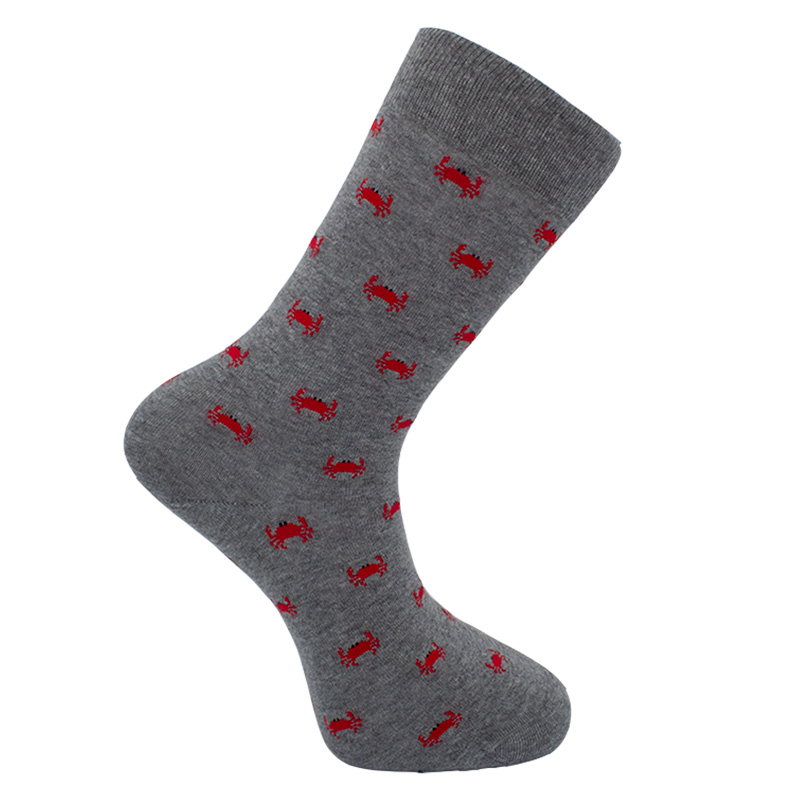 En un suave y clásico color gris mezcla estos pequeños cangrejos salpican este gracioso calcetín.