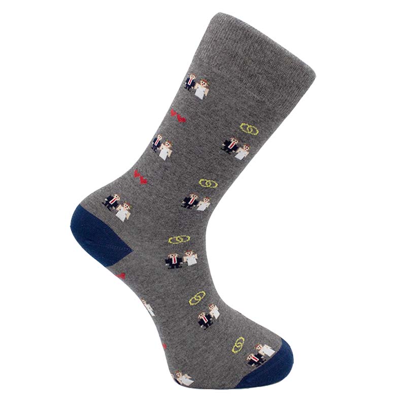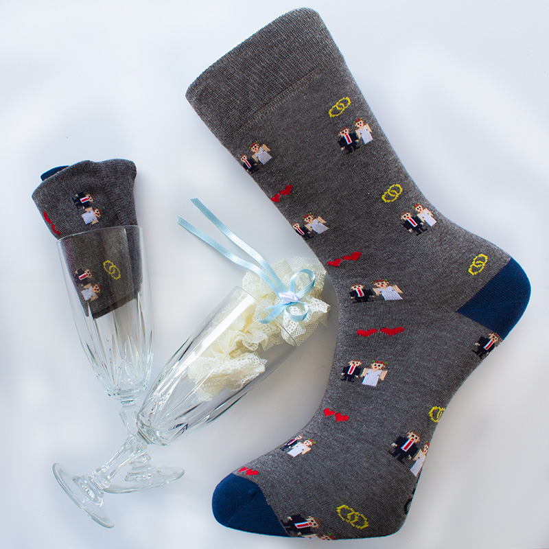 ¡Vivan los novios! Si buscas un detalle de boda original para regalar a tus invitados este modelo de calcetines plasma de una forma divertida el momento más feliz de vuestras vidas.