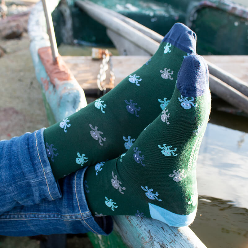 Le hemos dado un nuevo giro a uno de nuestros calcetines más exitosos: los calcetines Pulpos. Ahora en tonos verdes y azules.
