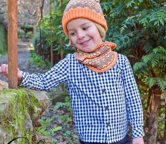 Camisa de niño colección Bear de Lolittos. Camisa de cuadros negros con detalles en color naranja, ideal para combinar con el jersey de la misma colección.