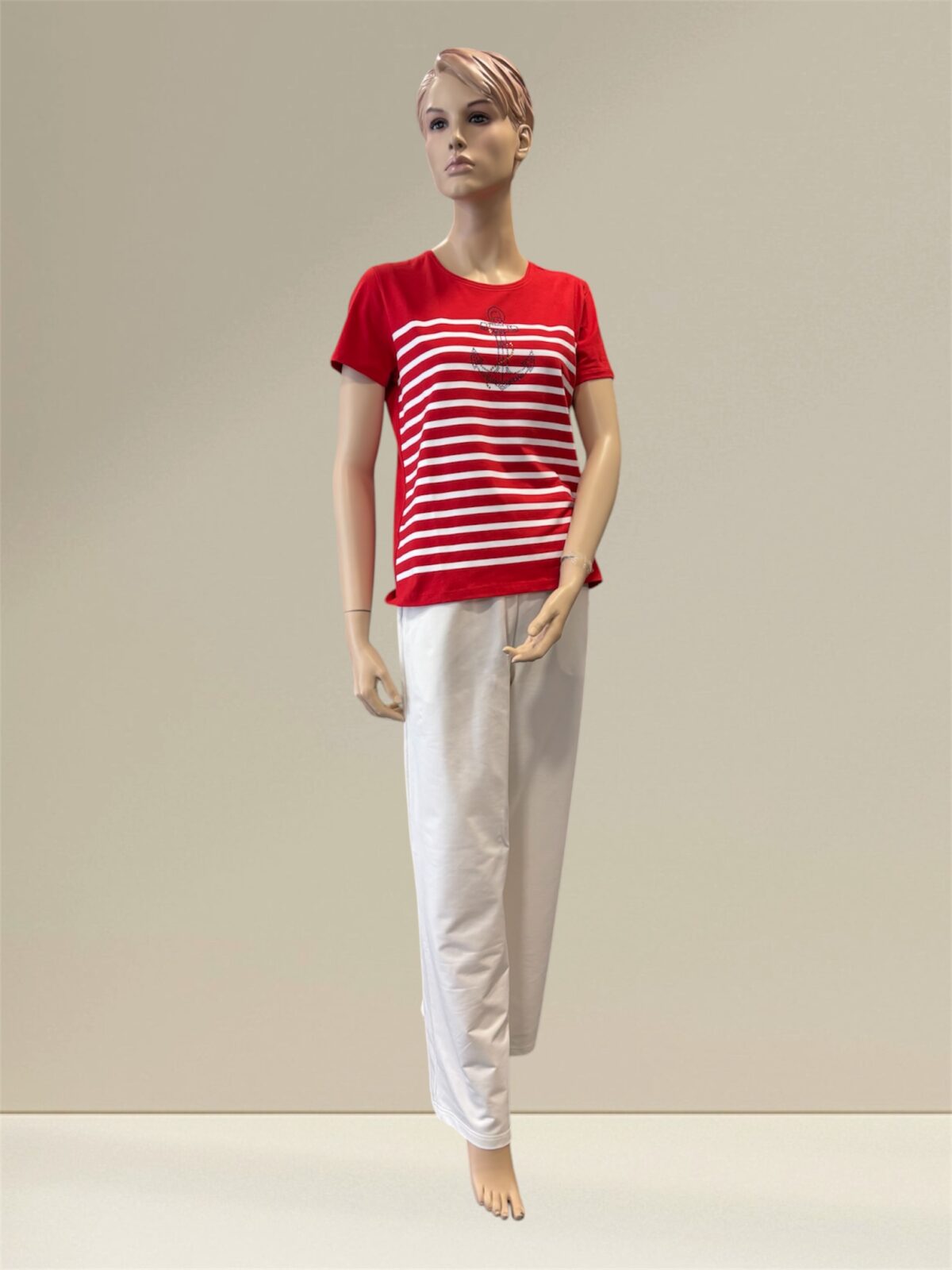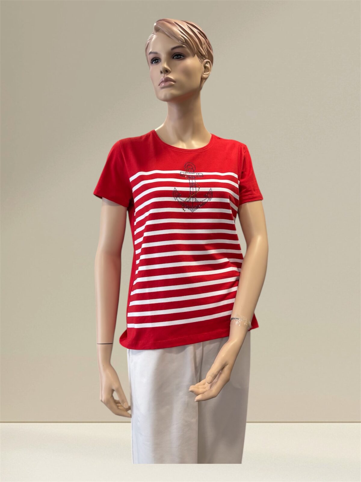CAMISETA ALGODÓN CON LICRA, ANCLA CON PIEDRITAS