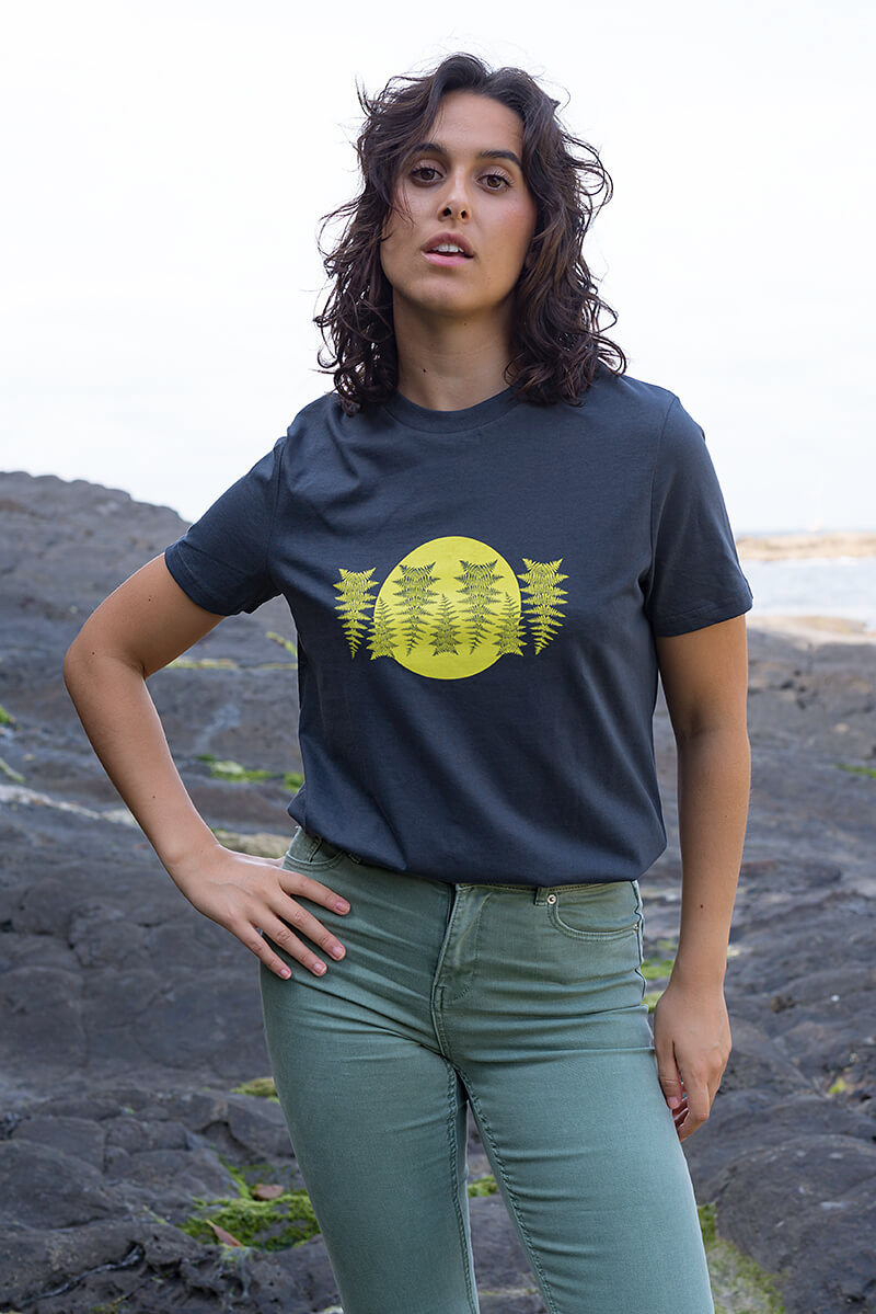 Camiseta unisex de manga corta 100% de algodón orgánico. Realizada de forma sostenible y vegana, con diversos certificados que acreditan su producción respetuosa con el medio ambiente y los trabajadores.