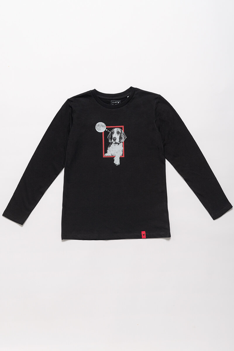 Camiseta niño de manga larga 100% de algodón orgánico. Realizada de forma sostenible y vegana, con diversos certificados que acreditan su producción respetuosa con el medio ambiente y los trabajadores.