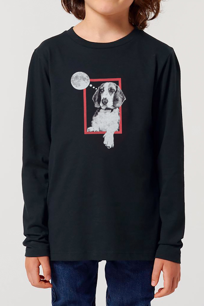 Te vayas o te quedas en casa, nosotros te proponemos que algún rato te plantees un viaje imaginario a la luna, ponte en situación… silencio…soledad… y una oscura inmensidad plagada de estrellas. Un viaje con éxito asegurado. El perro de nuestra serigrafia lo sabe muy bien.