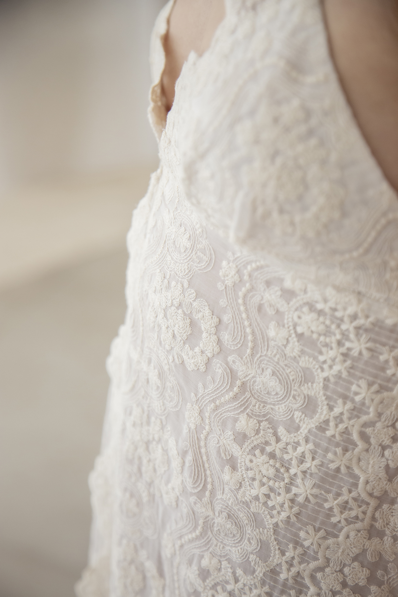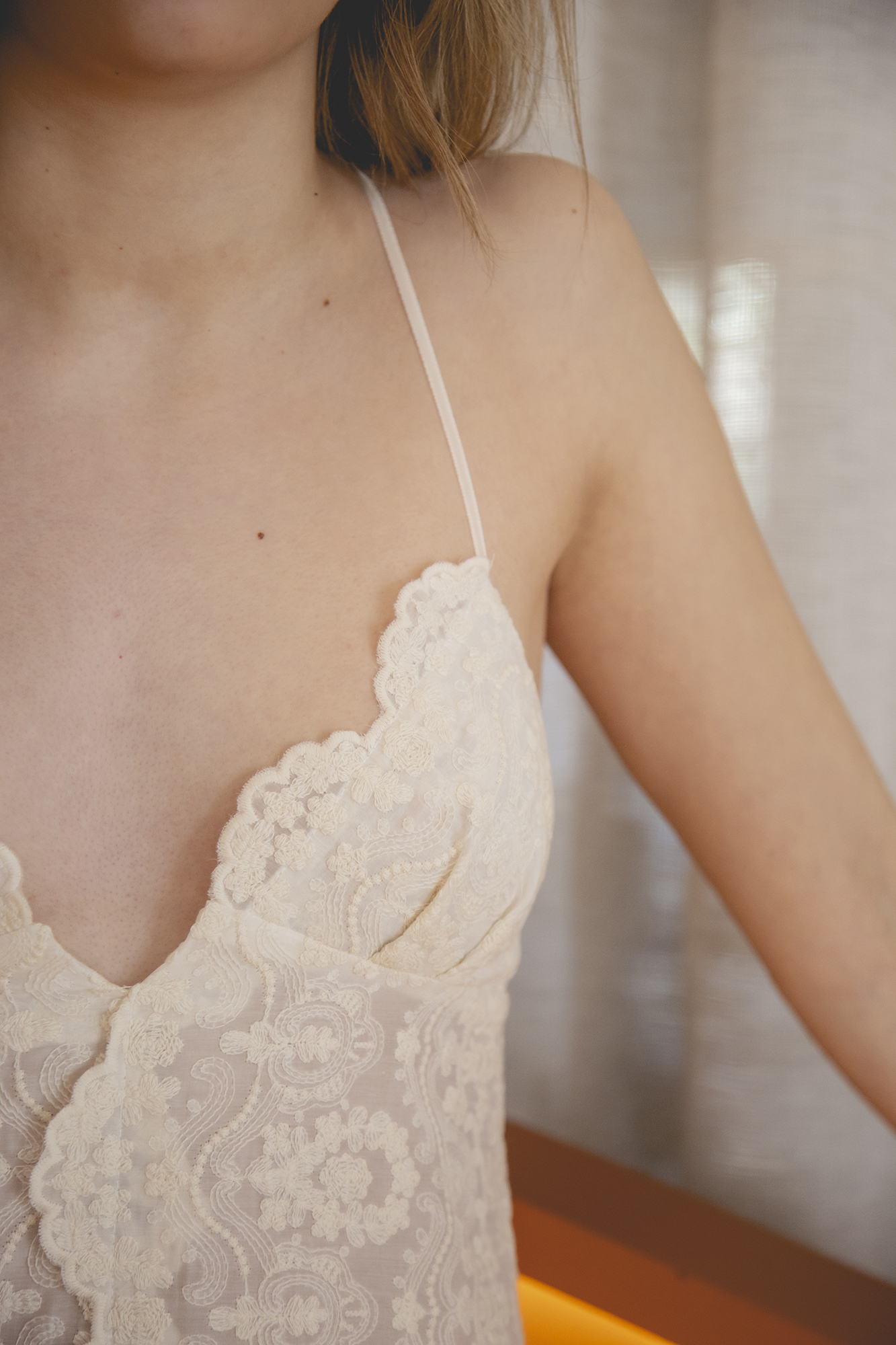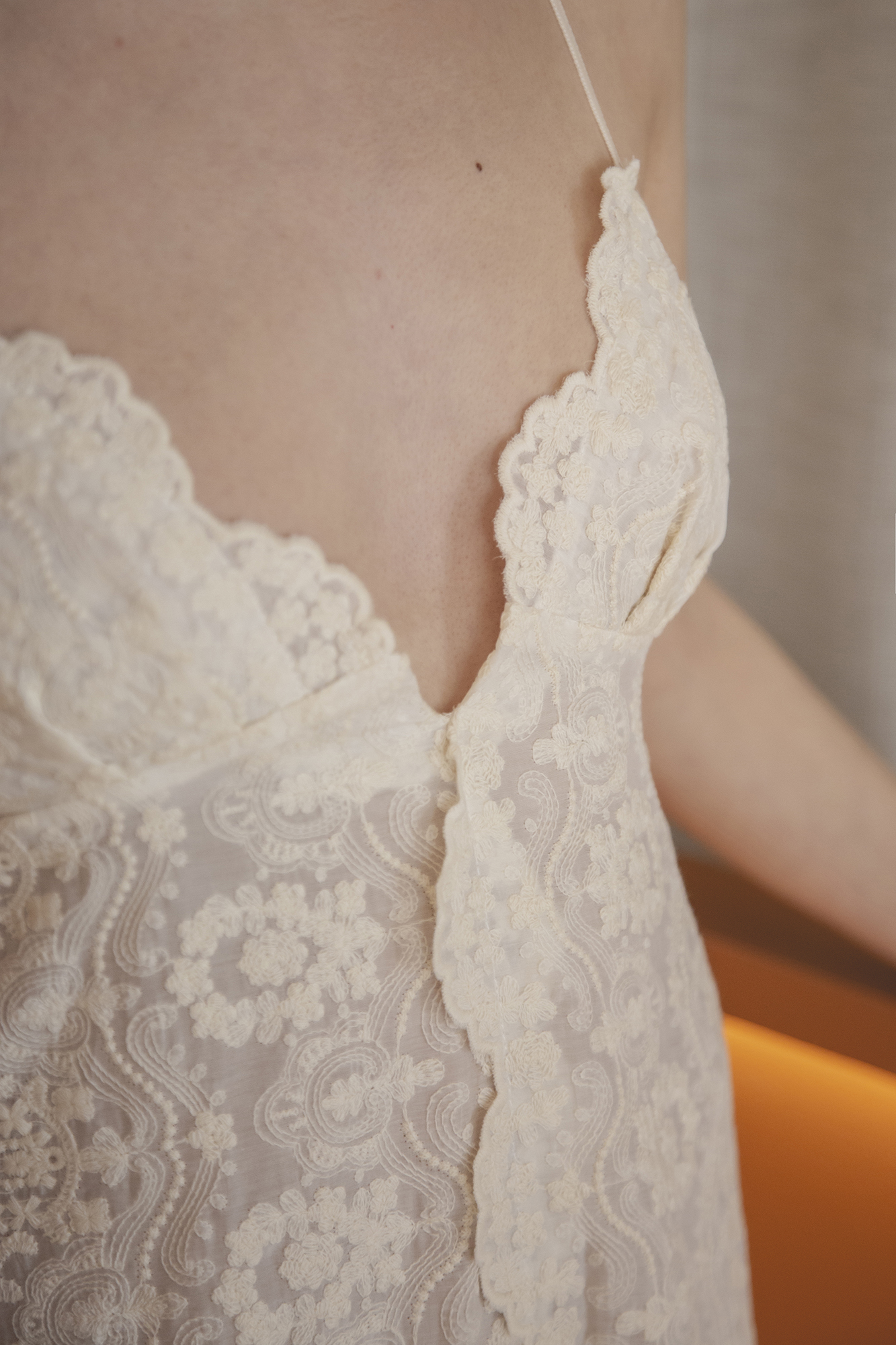 Camisón confeccionado en seda bordada, con bodoques bordados.