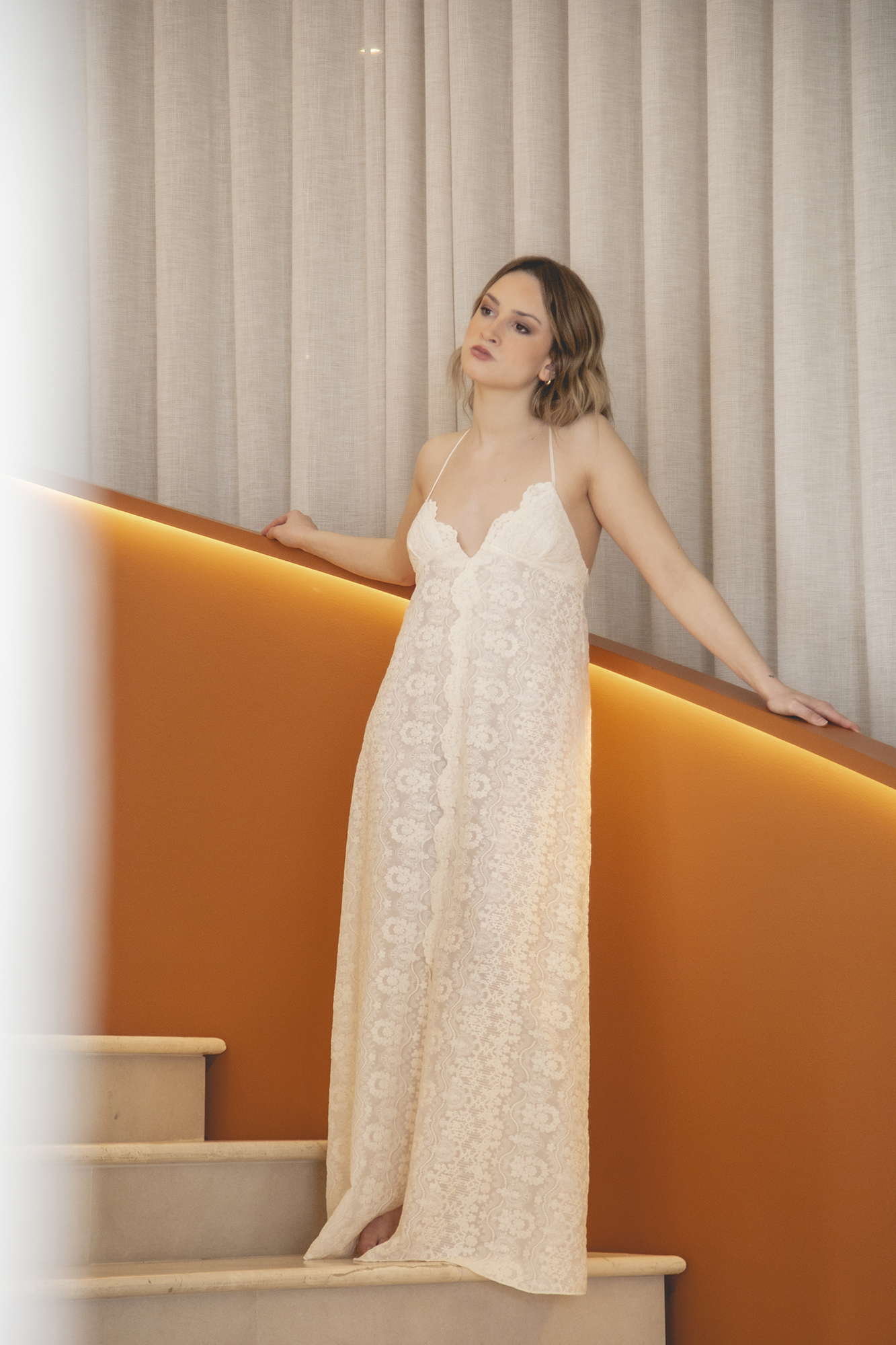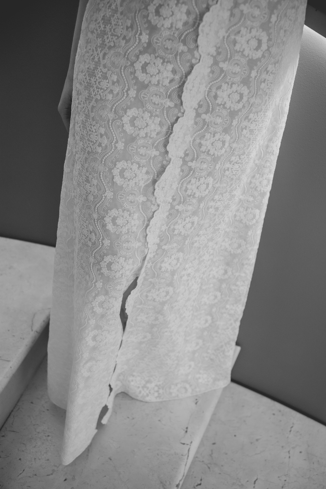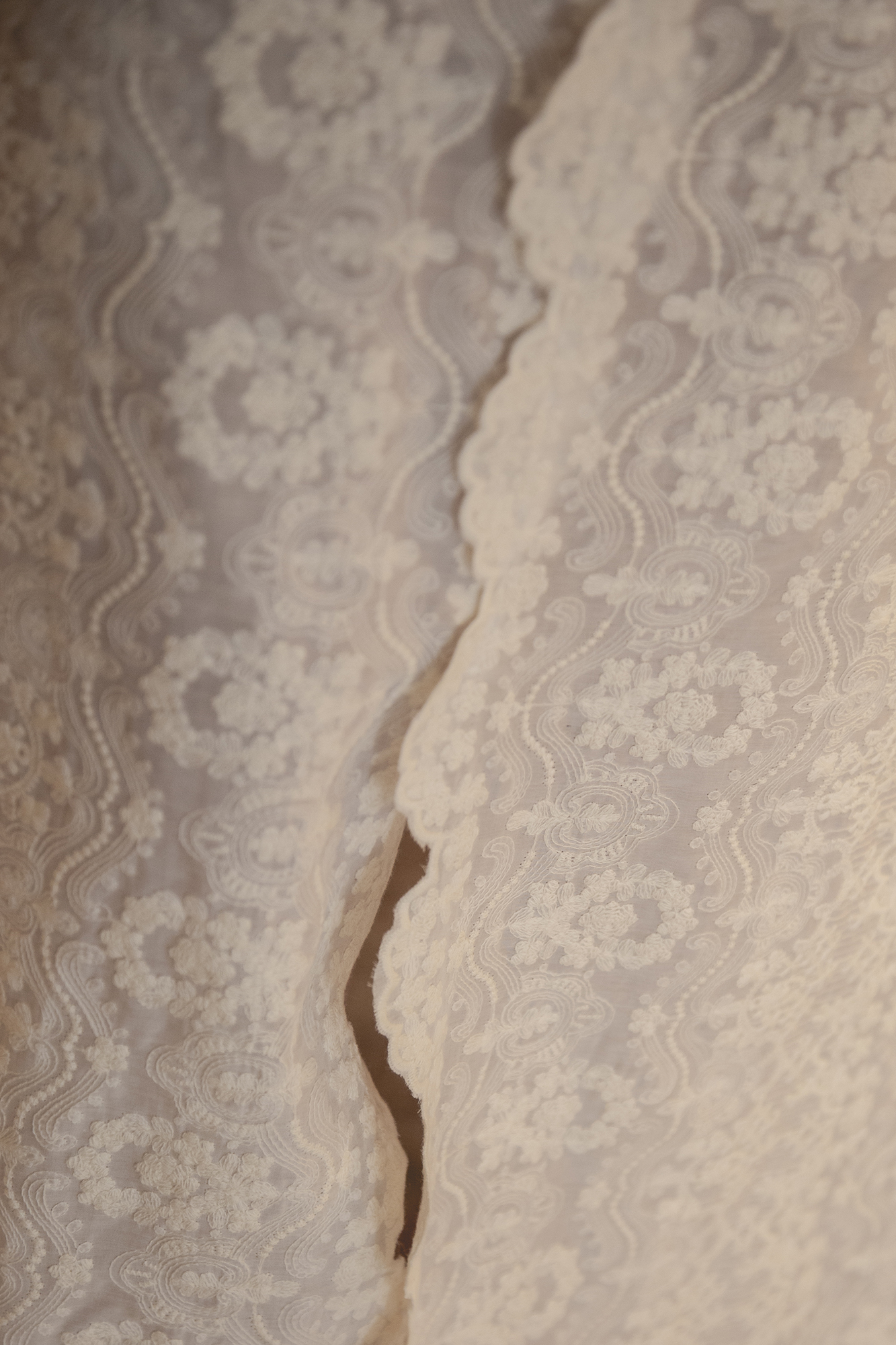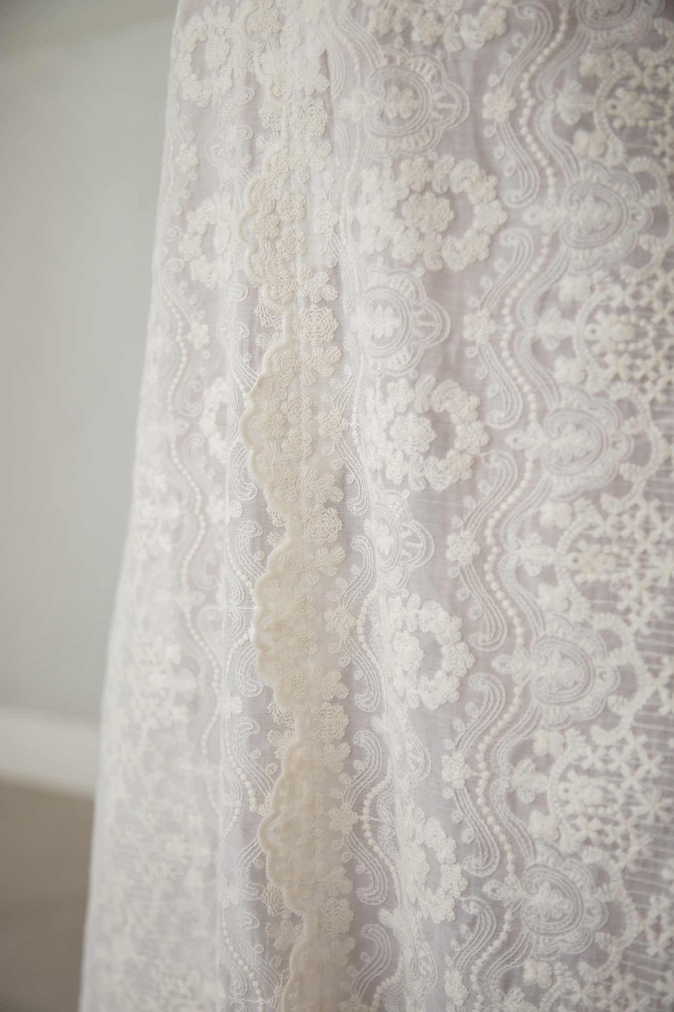 Camisón confeccionado en seda bordada, con bodoques bordados.