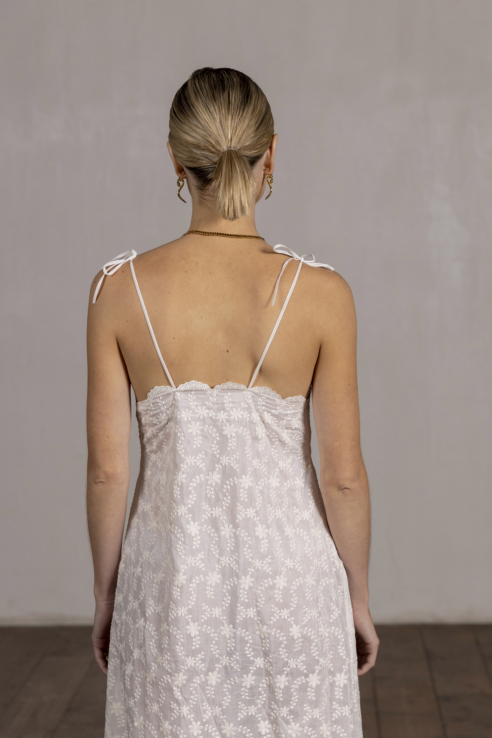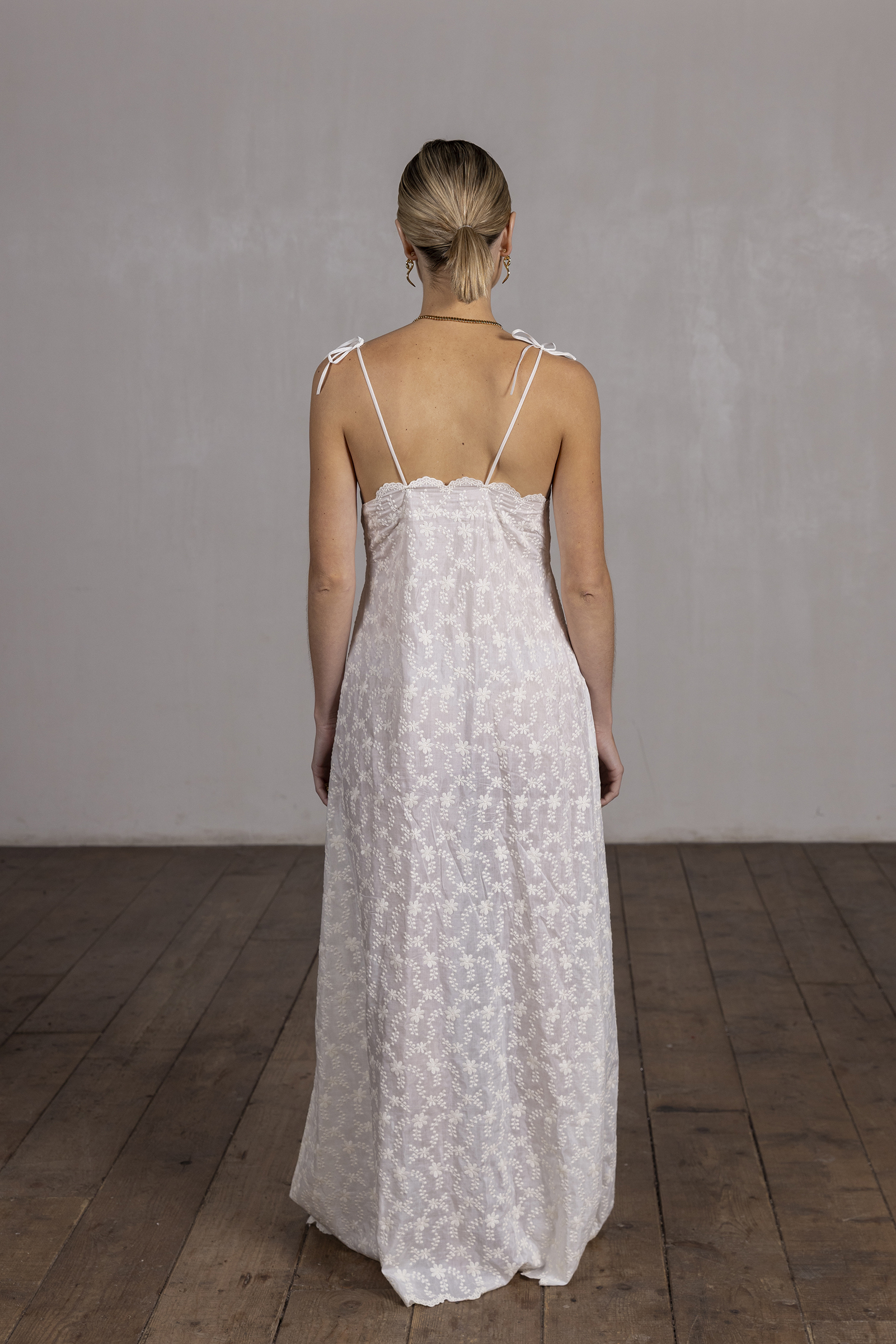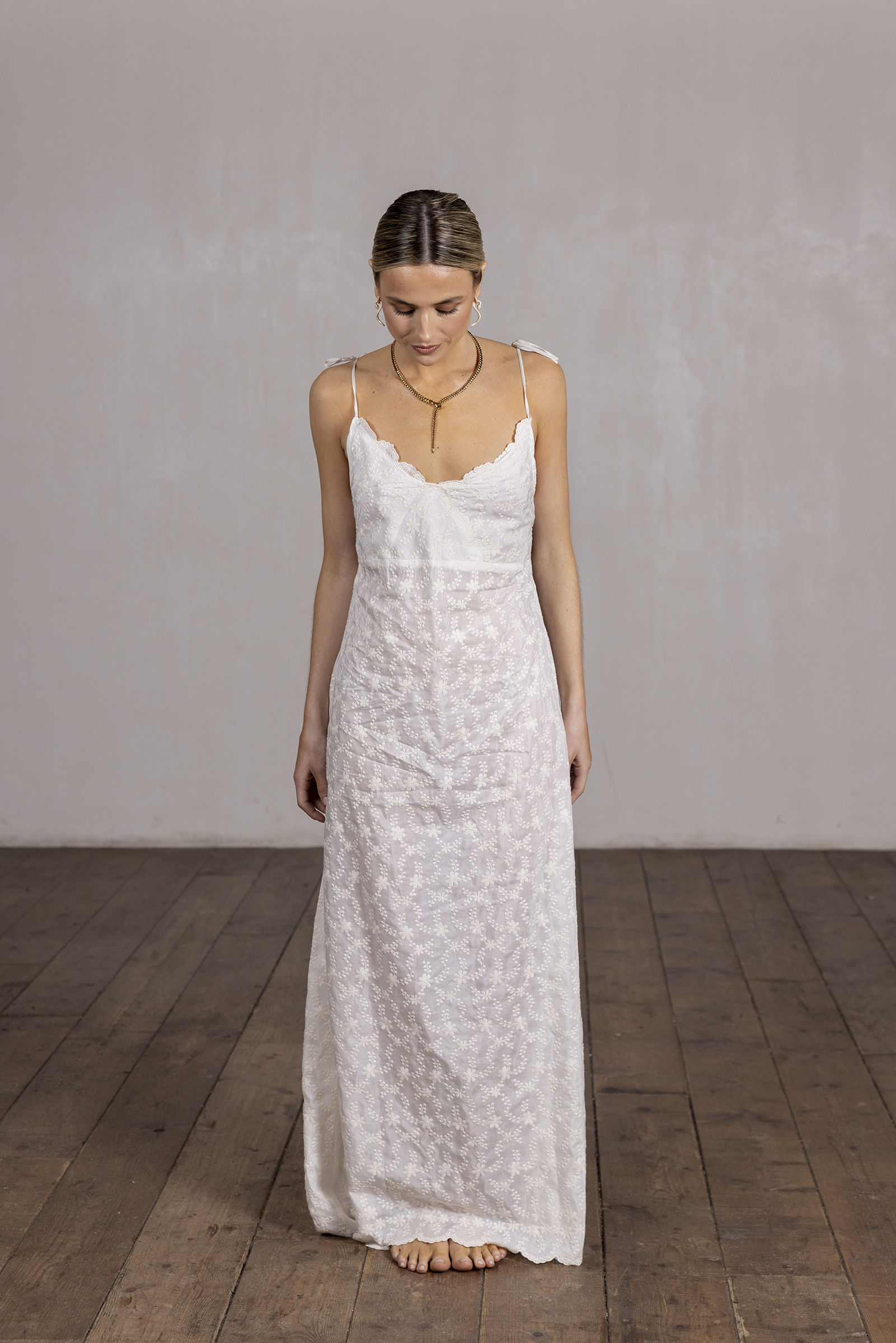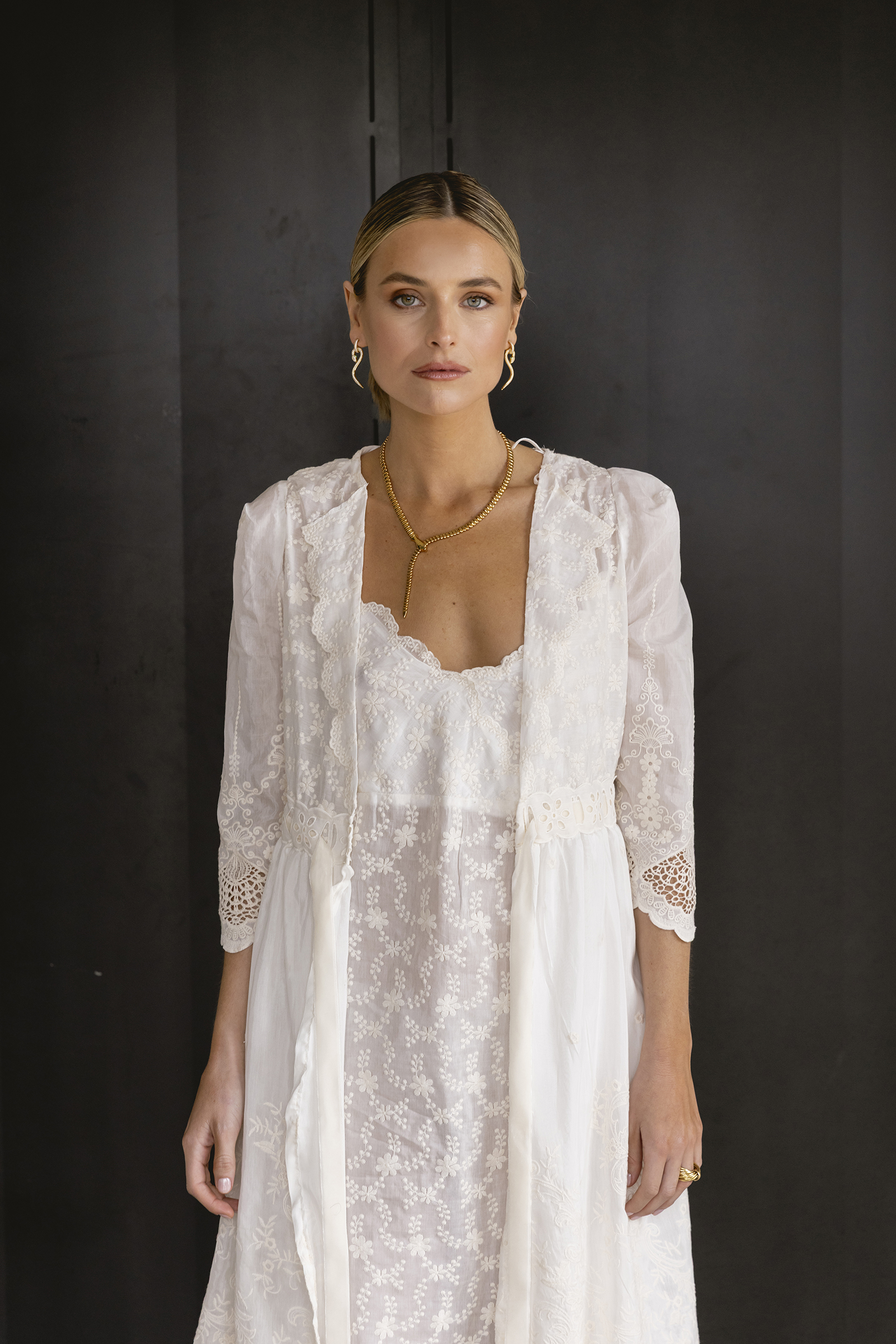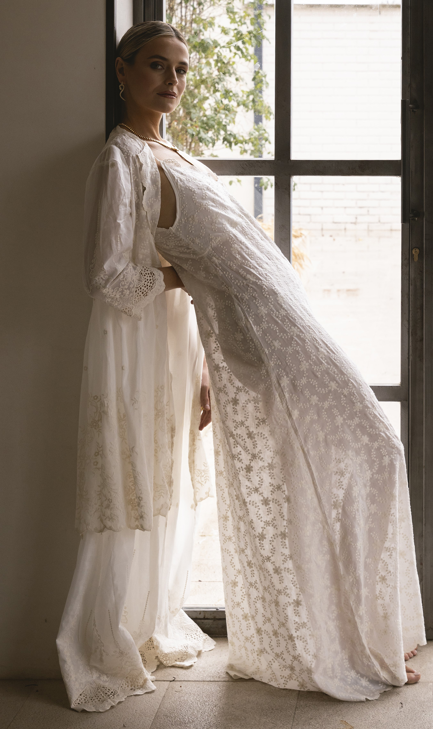 Lujoso camisón elaborado en seda bordada, diseñado con un elegante escote en V que realza la feminidad. Sus finos tirantes de terciopelo aportan un toque exclusivo y sofisticado. Combina perfectamente con la bata Valentina o cualquier otra bata de seda bordada, creando un conjunto de lencería refinado y sofisticado.