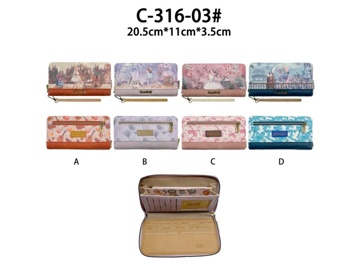 Cartera Sintética de Mujer con Muñeca Sweet Candy, Bolsillo Trasero con Cierre de Cremallera y Asa Corta Extraíble.