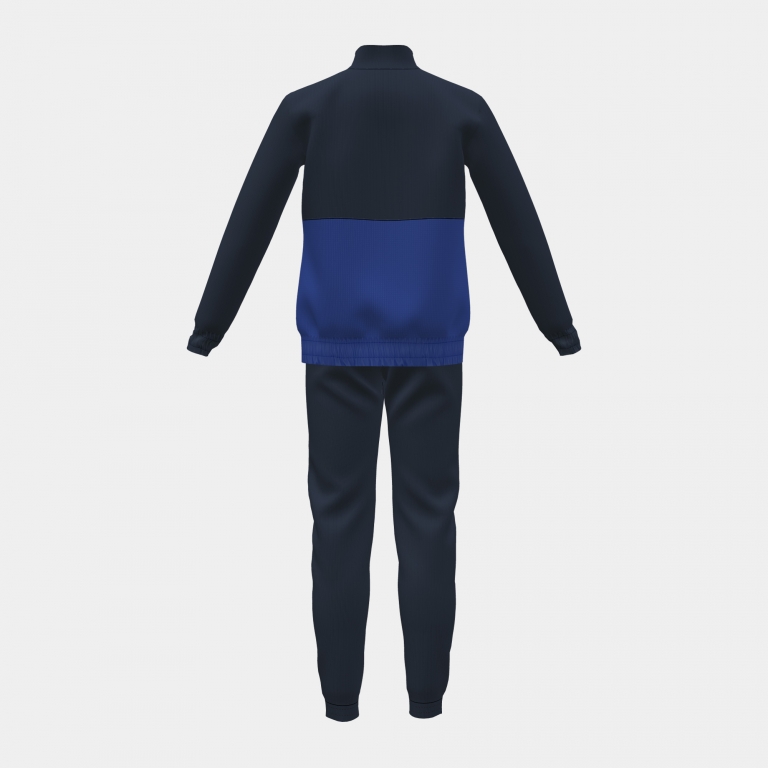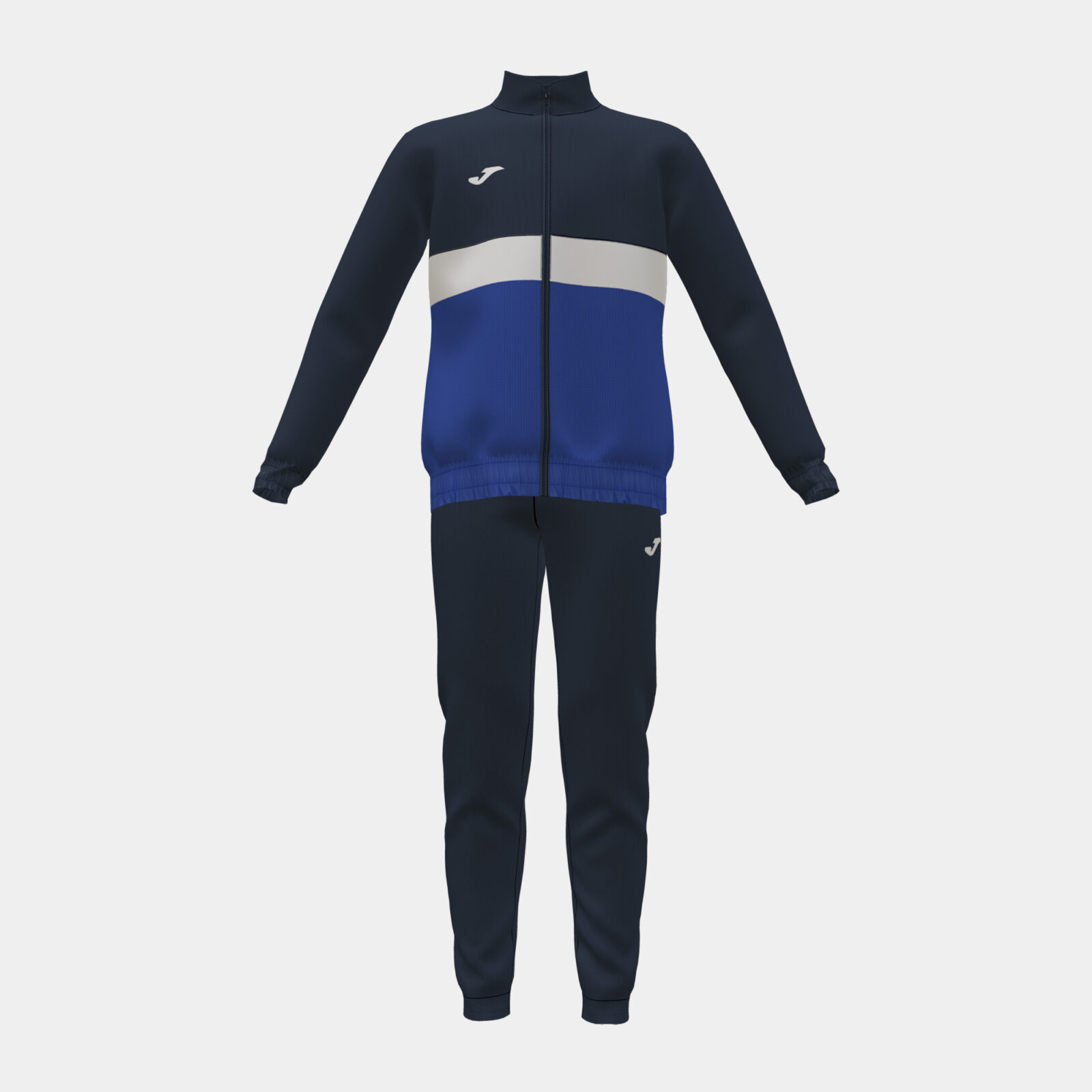 Chándal de niño/niña compuesto por chaqueta y pantalón largo. La chaqueta presenta cierre con cremallera, cuello alto y dos bolsillos frontales. Además, se ajusta en el bajo y los puños para mayor comodidad. El pantalón tiene dos bolsillos laterales y se ajusta en la cintura y el bajo mediante elástico. Ambas prendas están fabricadas con tejido suave y confortable, que proporciona calidez al pequeño deportista. Además, le ofrece libertad de movimientos.
