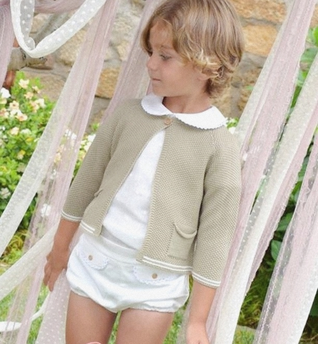 Chaqueta de punto de manga larga, color arena de bebe.
