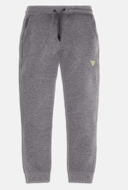 Conjunto gris de guess, sudadera de capucha y pantalón con detalles verde flúor.