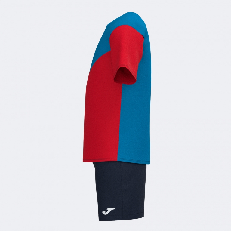 La camiseta incorpora cuello a pico con covertape elástico interior para optimizar el ajuste y prevenir posibles rozaduras. Diseño con cortes de contraste a color. Por otro lado, el pantalón corto presenta cinturilla elástica ajustable mediante cordón interior.