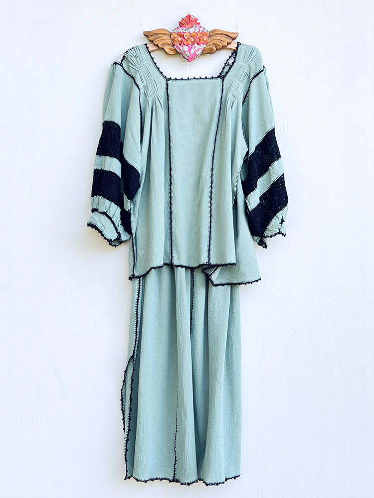 Dos prendas hechas totalmente a mano con algodón natural y uniones y detalles en crochet. Talla XL