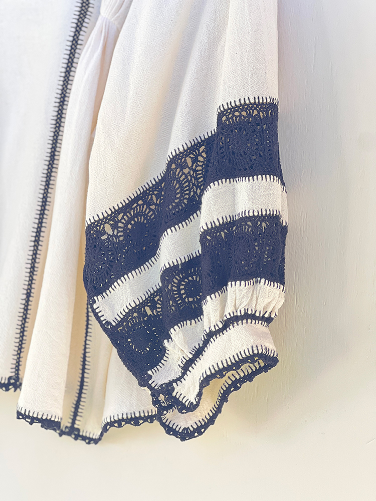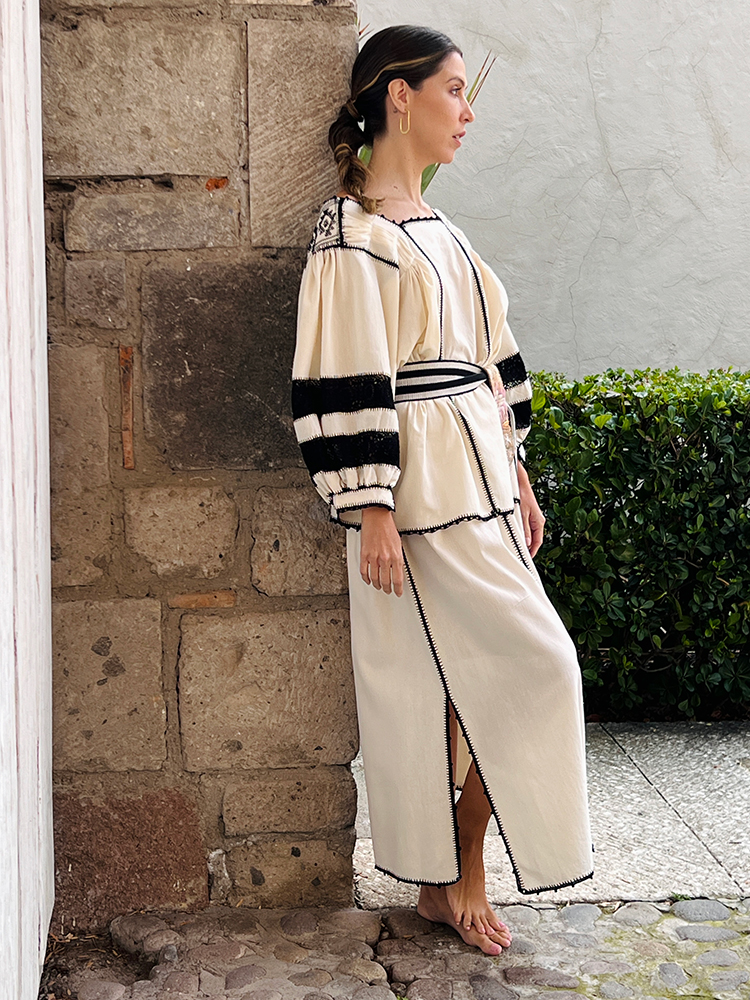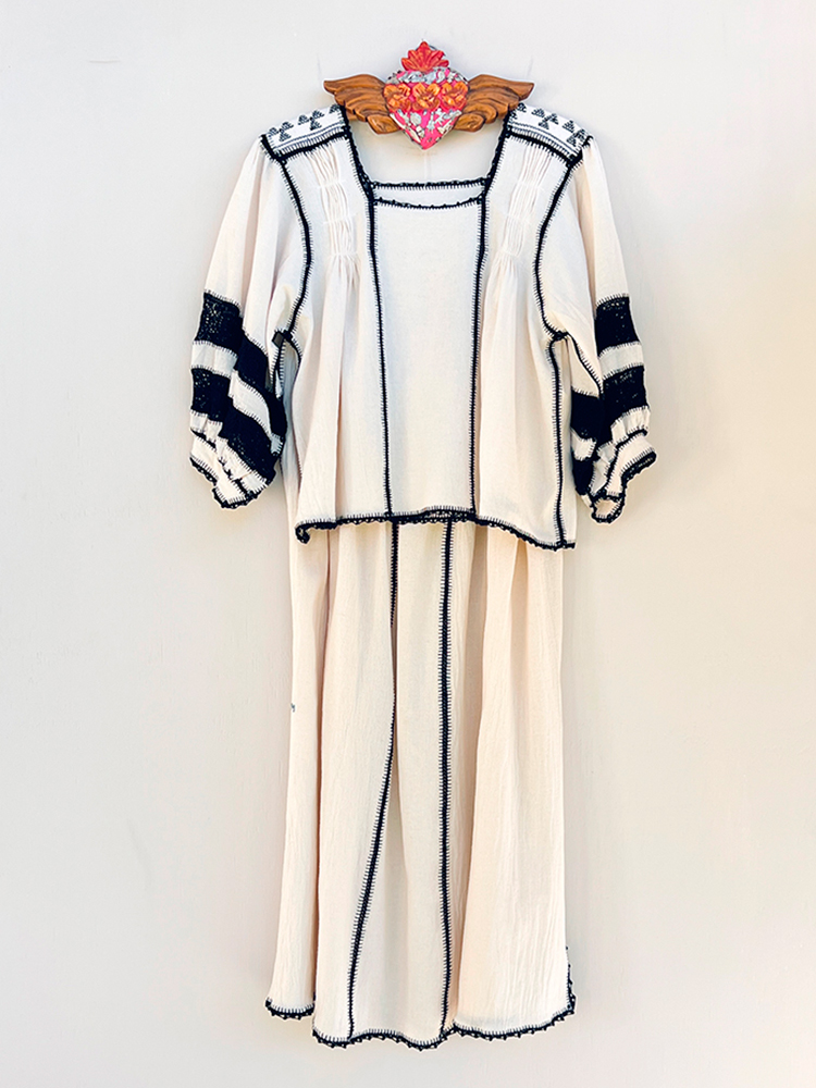 Dos prendas hechas totalmente a mano con algodón natural y uniones y detalles en crochet. Talla única.