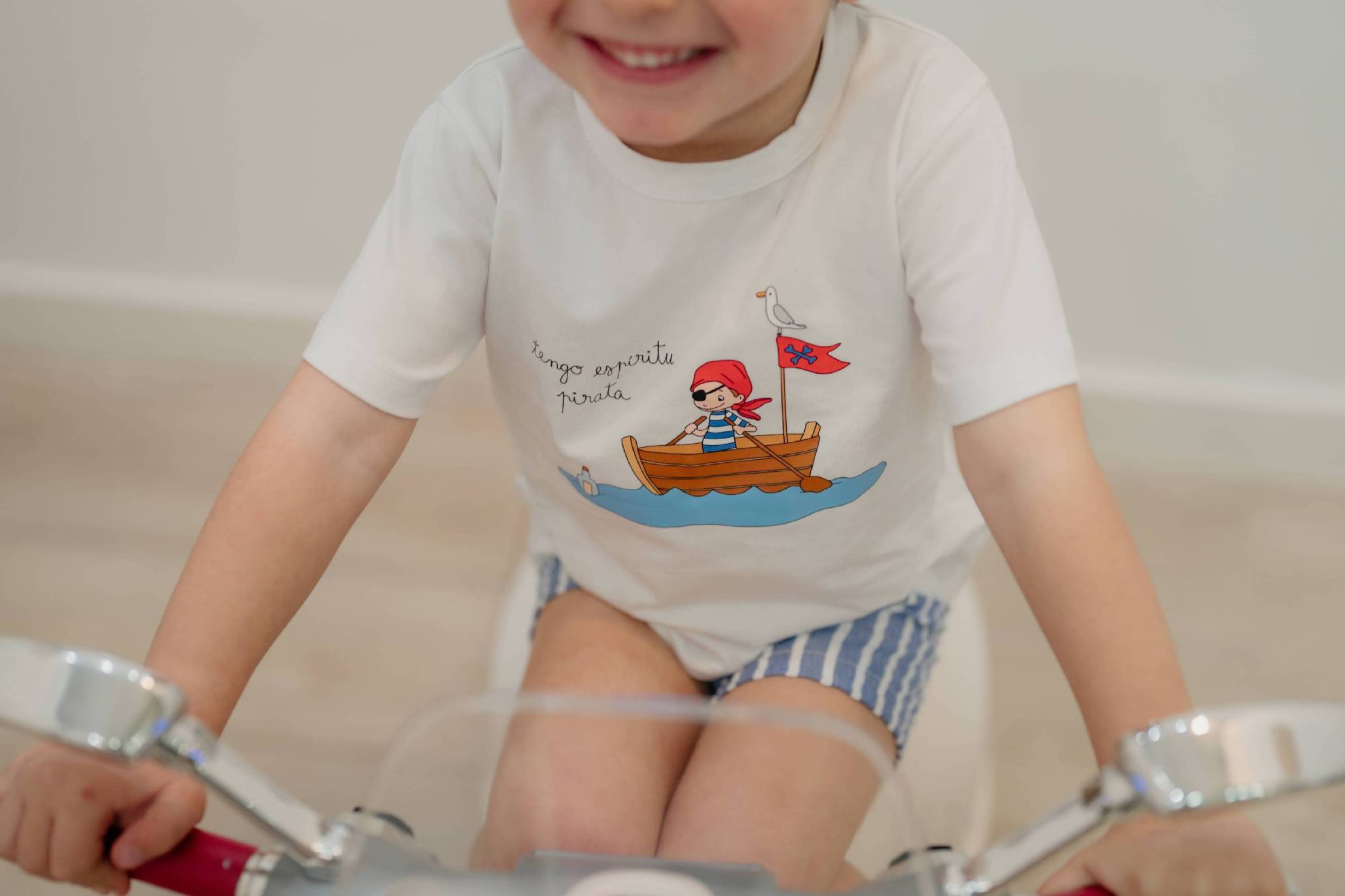 Conjunto de short de rayas con camista blanca con divertido dibujo pirata.