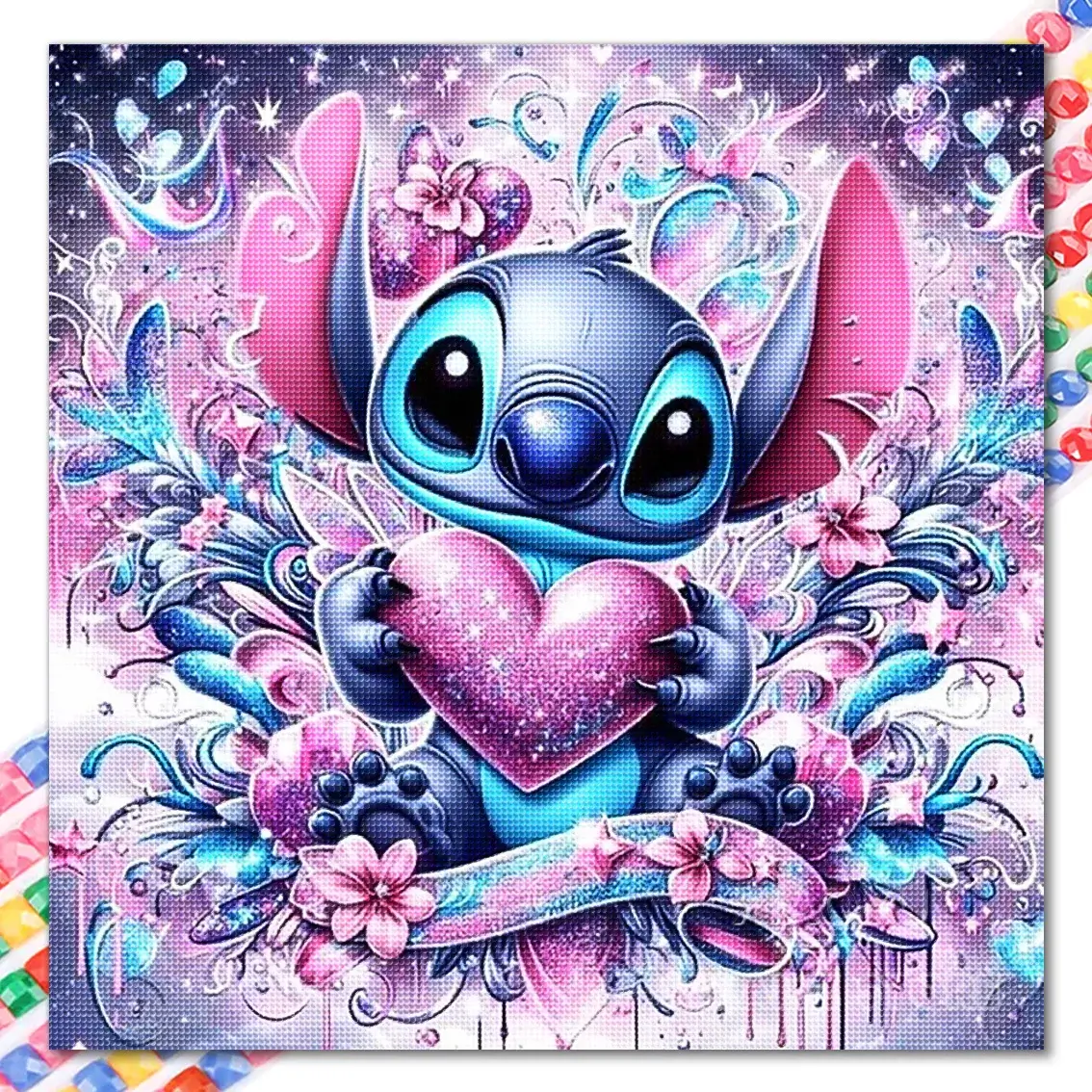 No solo es un pasatiempo encantador, sino también una excelente forma de expresar tus sentimientos, haciendo de este Diamond Painting una perfecta pieza de regalo o una hermosa adición a tu decoración personal. Déjate llevar por los vibrantes tonos escarlatas y el tierno gesto de Stitch, y transforma cualquier espacio con esta joya artística.