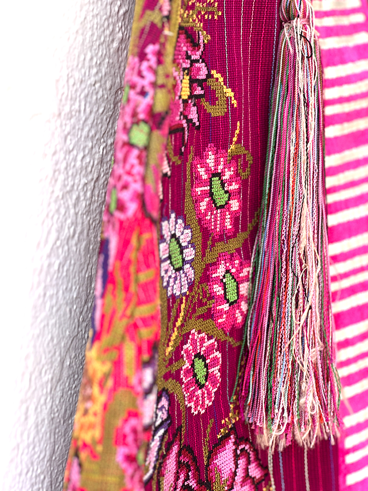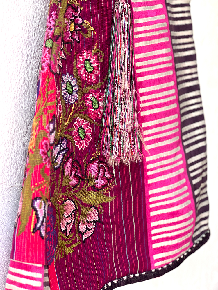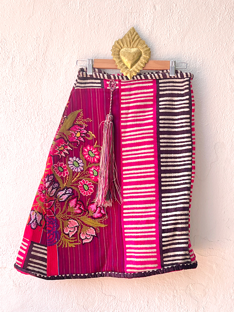 Falda envolvente hecha con huipiles bordados en punto de cruz originarios de una pequeña Comunidad en los Altos de Chiapas. Talla única.