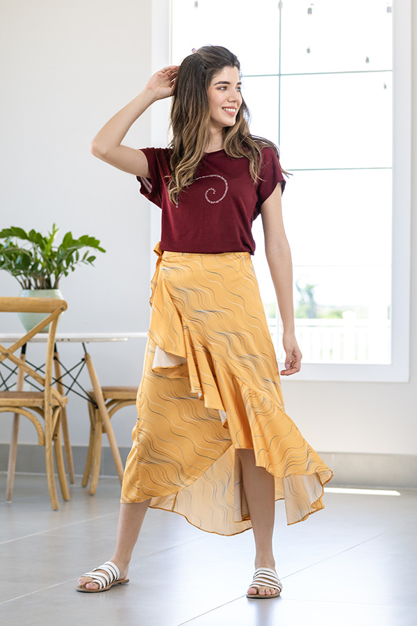 Falda midi irregular con volados