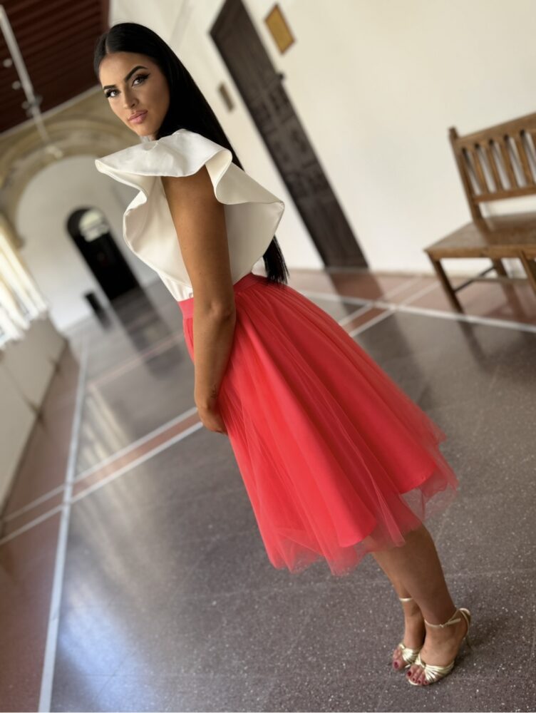 Falda en tejido tul forrada al tono. Un clásico de armario ideal para eventos de primavera/verano.