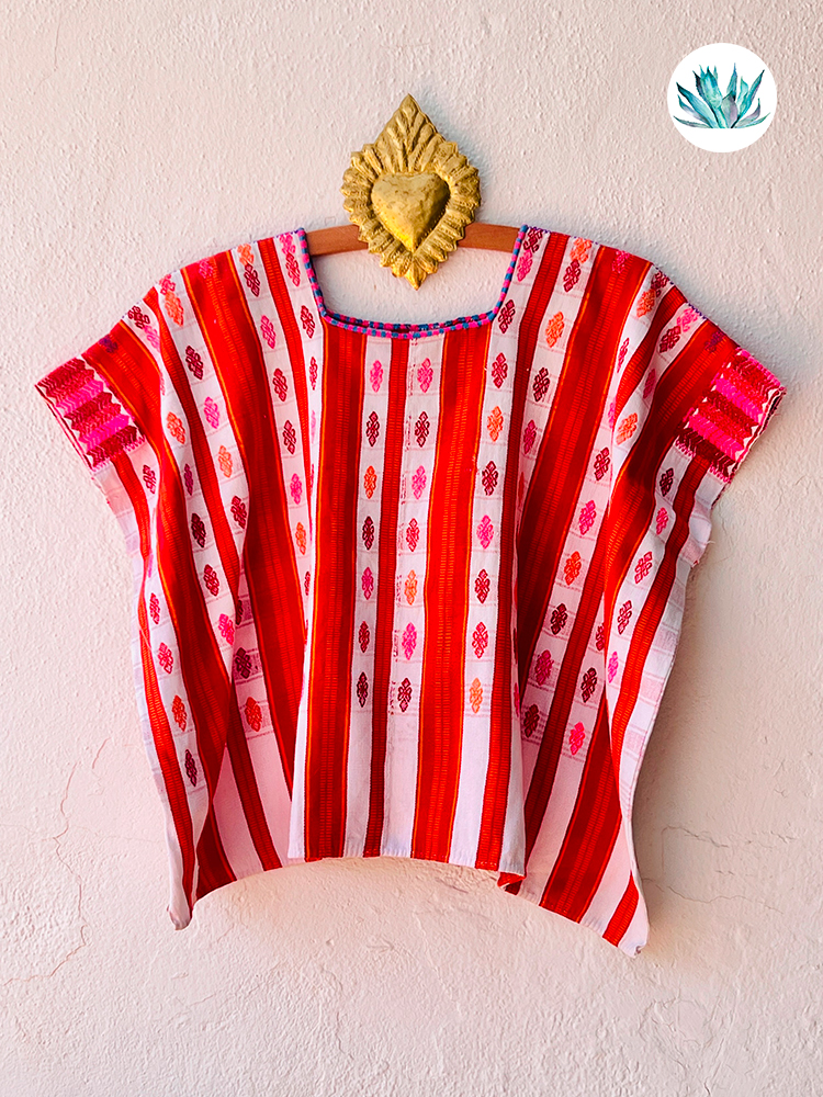 Huipil Tradicional de la Comunidad Pantelho en los Altos de Chiapas. Tejido en telar de cintura por Artesanas de su Comunidad de origen. Talla única.