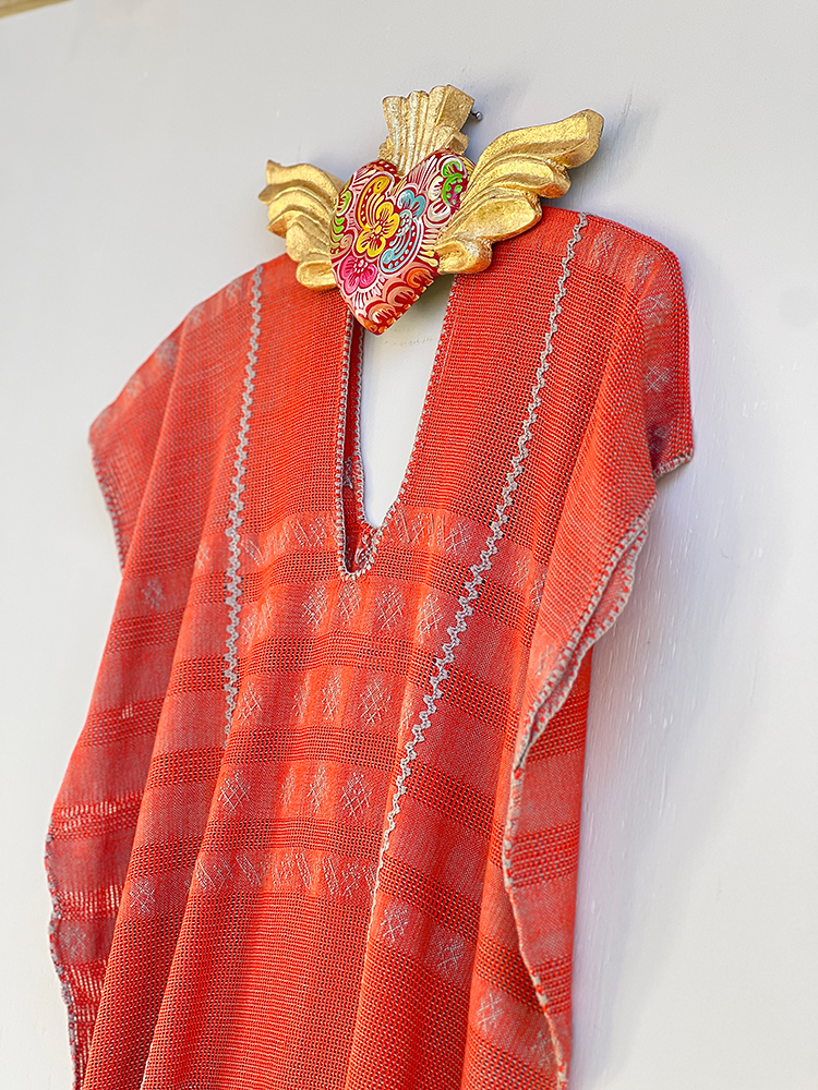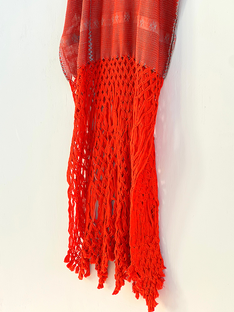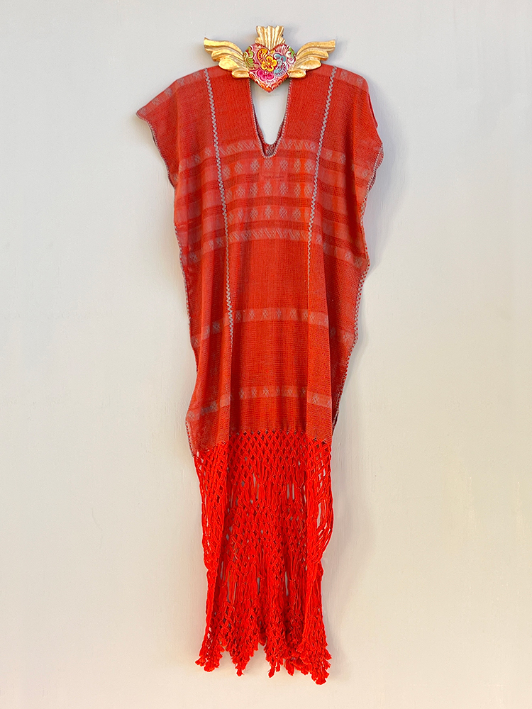 Sé el primero en valorar “Huipil «Valentina» fleco largo naranja y gris”