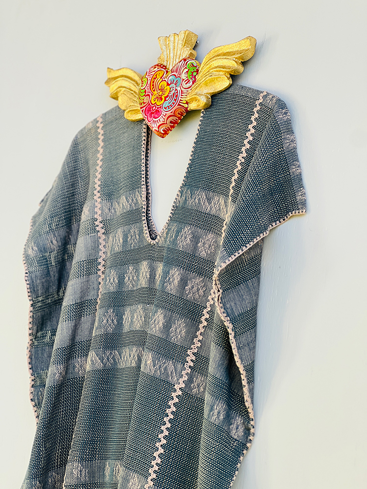 Huipil «Valentina» fleco largo petróleo y beige