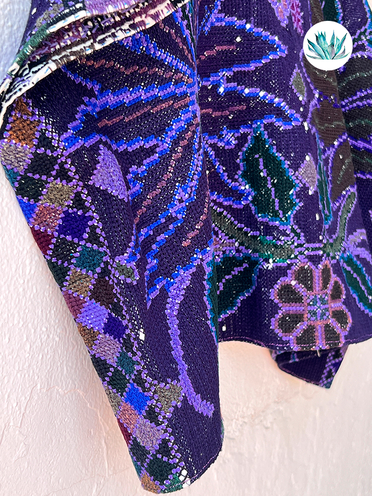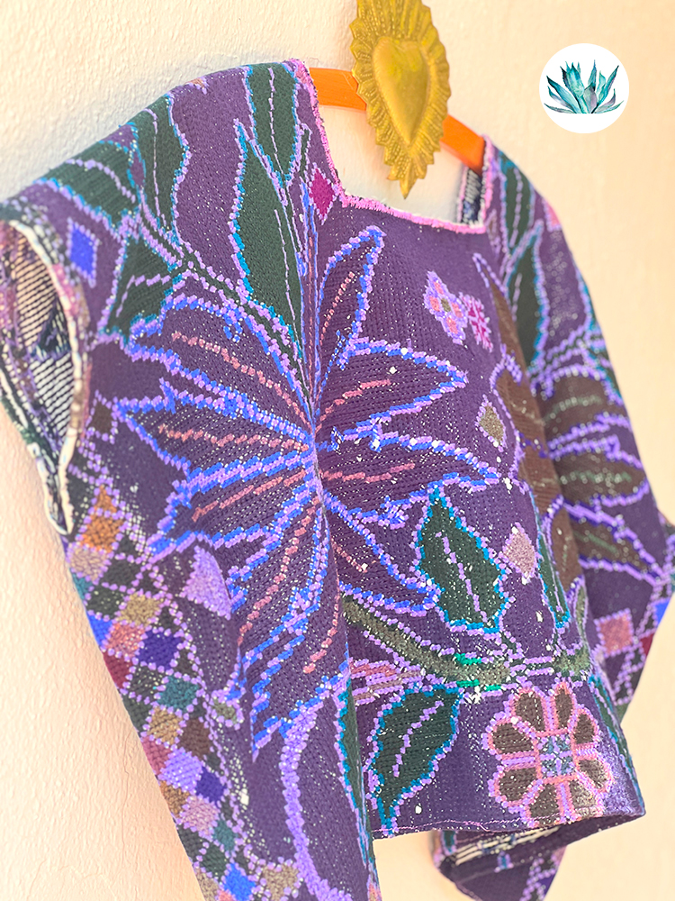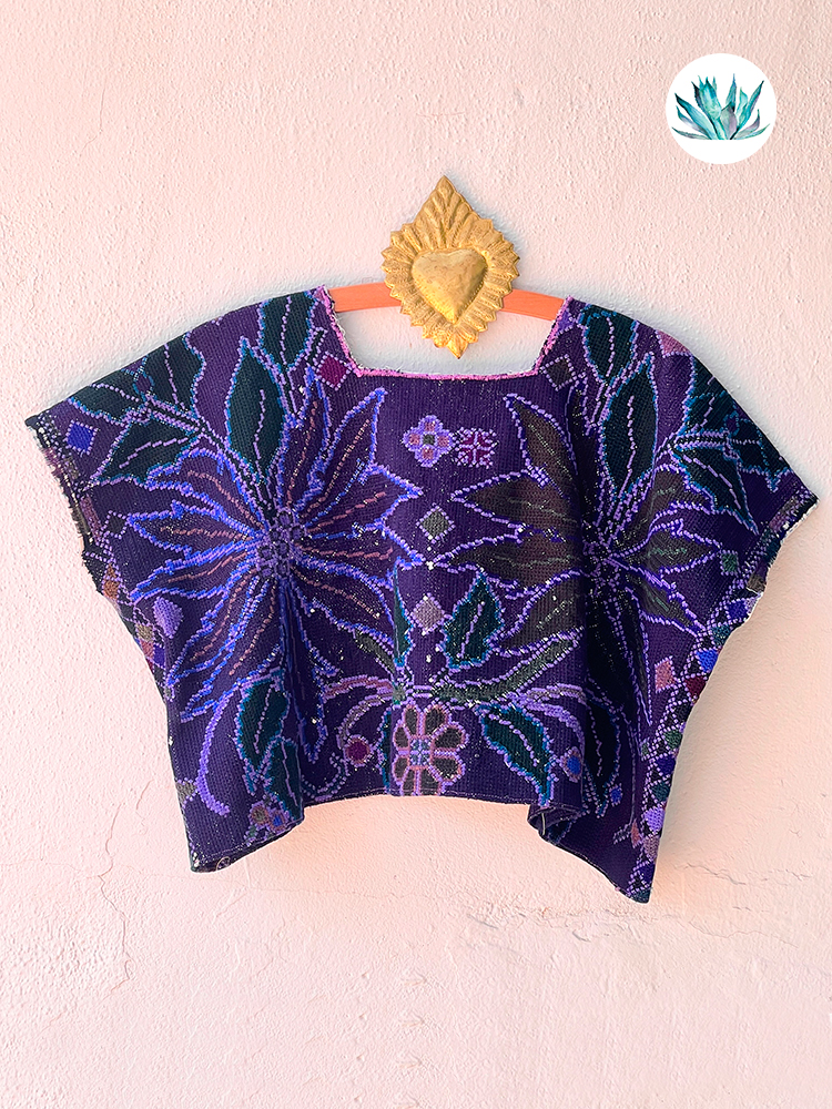 Huipil bordado a mano en punto de cruz por Artesanas de la Comunidad de Zinacantan en los Altos de Chiapas. Como todas las prendas antiguas puede tener pequeñas imperfecciones. Talla única.