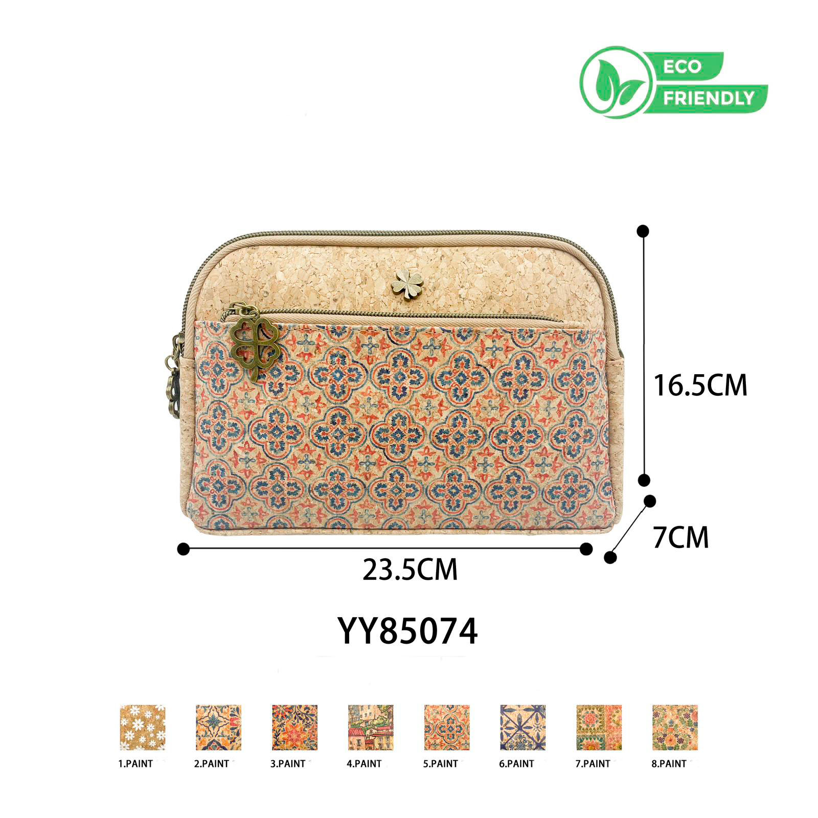 Monedero Compacto y Ecológico en Corcho Sintético con Bolsillo Frontal con Cierre de Cremallera para Mujer.