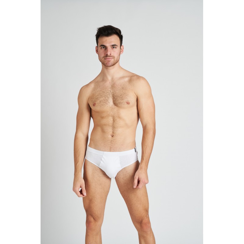 Pack de 3 slips de caballero de algodón en blanco. Con canalé en la parte posterior.