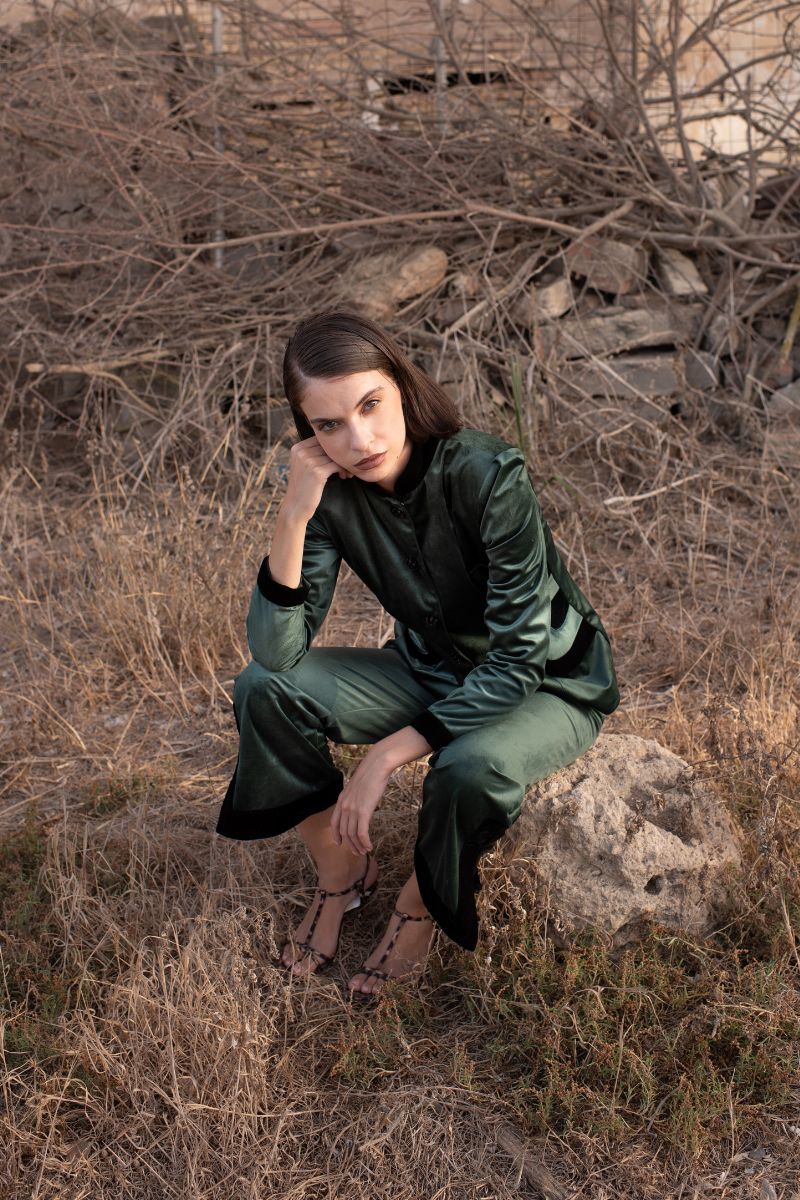 El Pantalón Caroline es mucho más que un básico de armario. Es una declaración de estilo, una fusión entre lo clásico y lo contemporáneo, y una apuesta por la sofisticación en estado puro. Confeccionado en un terciopelo verde botella, profundo y luminoso. Este pantalón es la opción perfecta para esos días y noches en los que quieres sentirte especial, poderosa y cómoda a partes iguales.