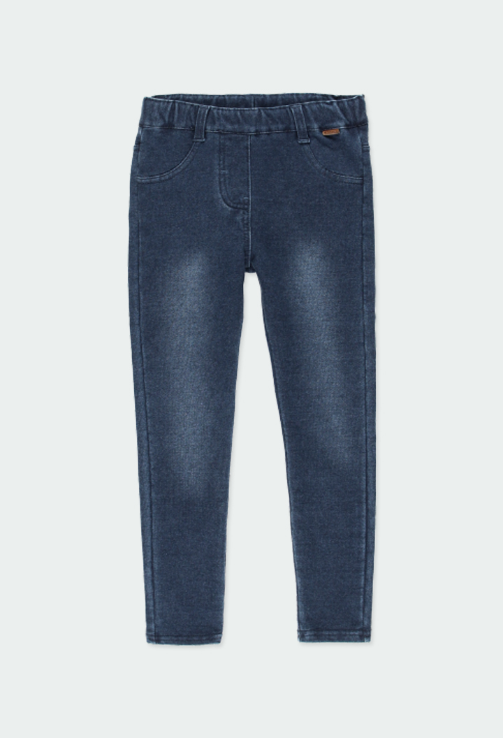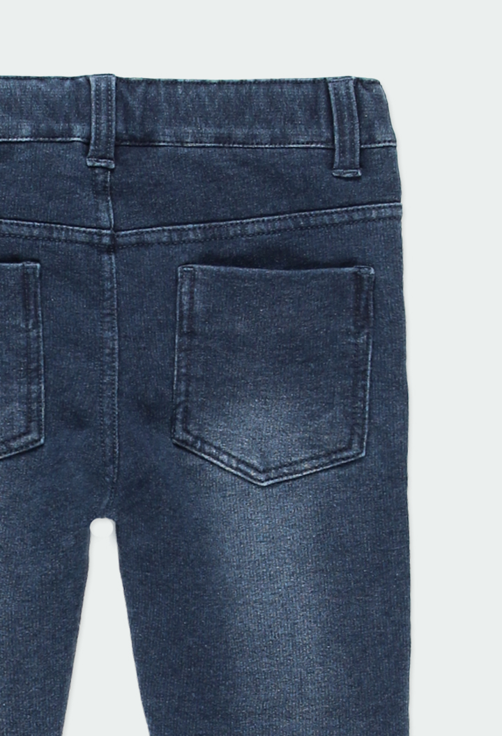 Pantalón denim elástico color azul. Con gomas en la cintura para mejor ajuste.