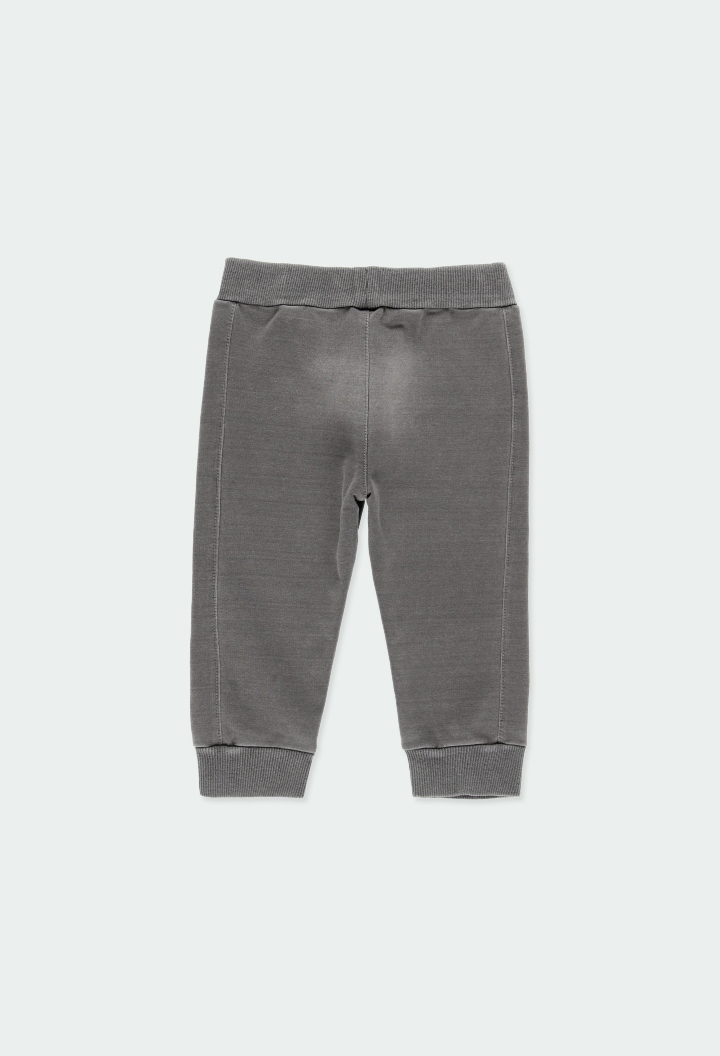 Pantalón de felpa elástica gris de niño , se ajusta con goma y cordón.
