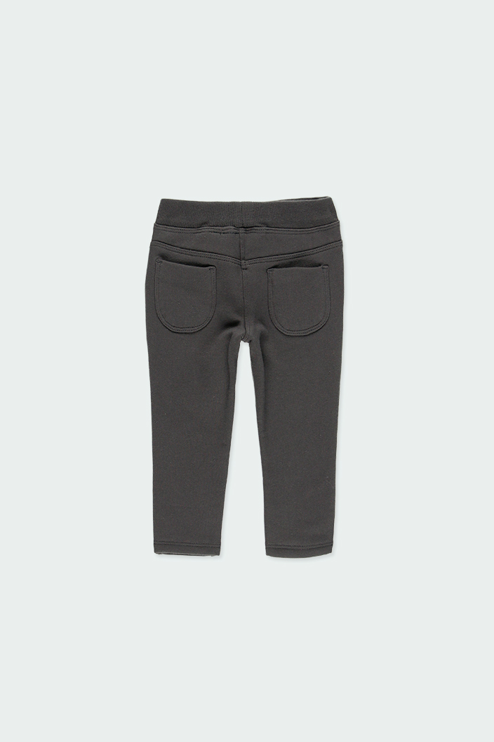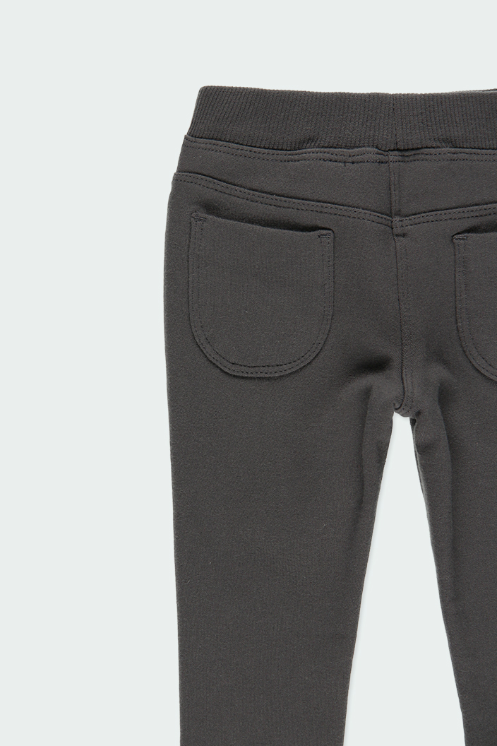 Pantalón de felpa elástica perchada de niña color gris.