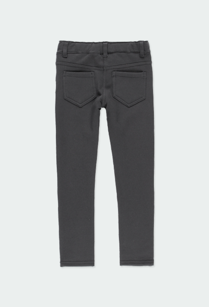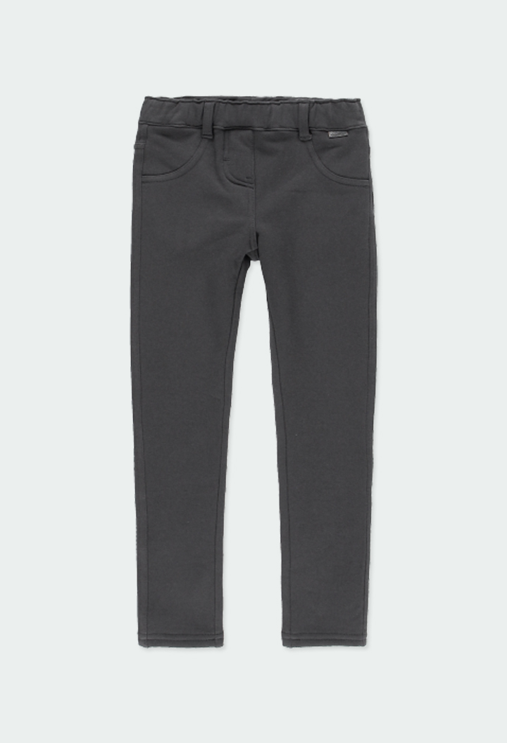 Pantalón felpa elástica perchada de niña color gris. Cintura con gomas.