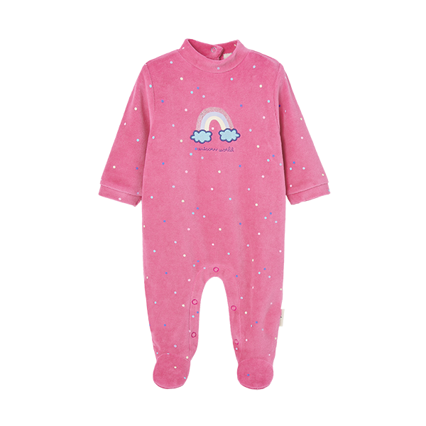 Pelele de manga larga con puño y cierre trasero y en el bajo, con estampado de arcoíris bordado.
