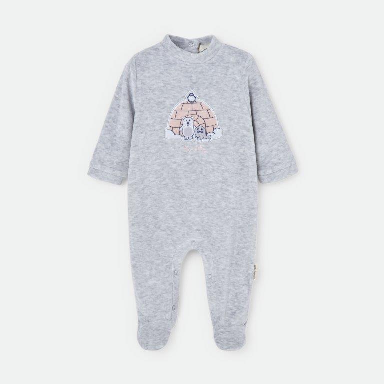 Pelele de manga larga con puño y cierre trasero y en el bajo, con estampado de iglú bordado.